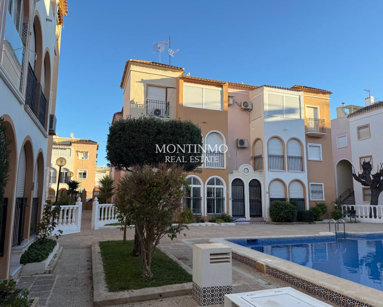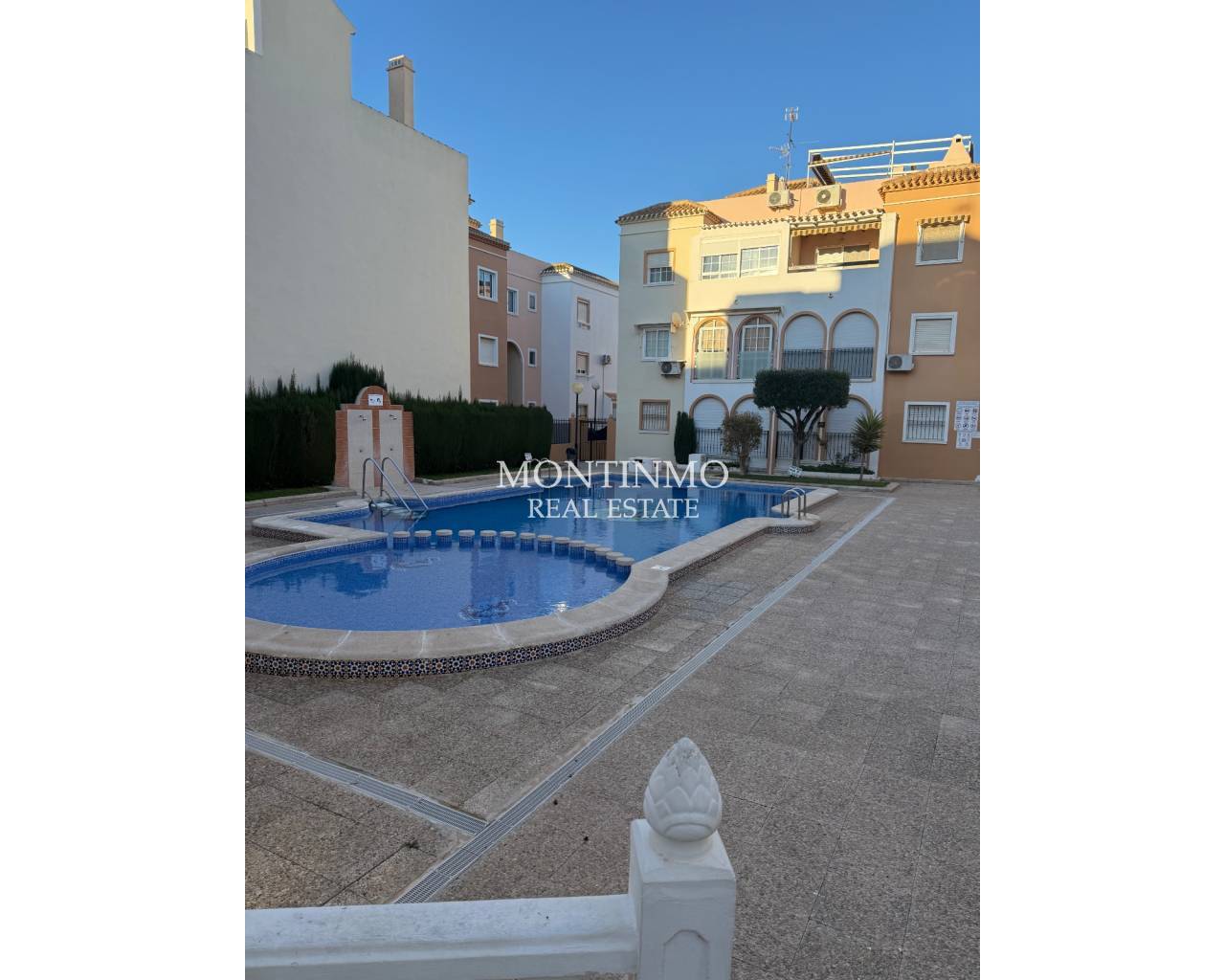 2-bedroom apartment, South of Torrevieja, La Veleta. Located on the first floor in the sought-after El Paraíso neighborhood. Just 200 meters from the sea, it's ideal for enjoying the Mediterranean lifestyle year-round. The property offers 60 m² of comfortable and functional living space. The warm and inviting living/dining room, bathed in natural light, opens directly onto a pleasant terrace – the perfect space to relax, sunbathe, or enjoy al fresco dining. Thanks to its orientation, the apartment benefits from excellent natural light, creating a comfortable and welcoming atmosphere. It includes two spacious and bright bedrooms, perfect as master bedrooms, guest rooms, or even an office. The fully equipped bathroom is in good condition and offers a practical layout. The residence features a beautiful communal swimming pool, surrounded by meticulously maintained common areas, perfect for cooling off in the summer, relaxing, or spending time with family without leaving the residence. Located in a quiet neighborhood with all amenities nearby: supermarkets, restaurants, bars, public transport, medical centers, and leisure areas. Furthermore, the apartment is only 40 minutes from the airport, making it an excellent option as a primary residence, a second home, or a high-yield investment for seasonal rentals.