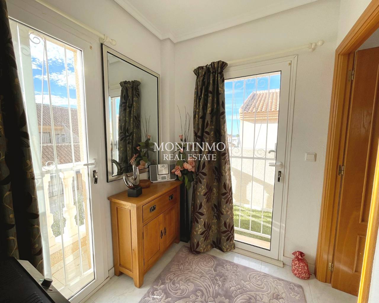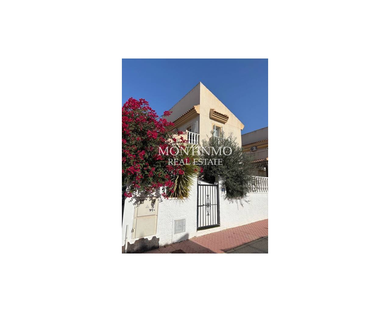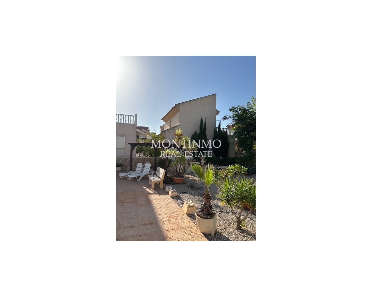 We are pleased to present this 3 bedroom detached villa for sale in Ciudad Quesada. The villa sits inside a gated community area, facing south, offering sun all day on the front of the property. Inside the property has a spacious living/dining room, separate kitchen, 2 bedrooms and a bathroom on the ground floor. Upstairs their is a private master suite, with a large bedroom and ensuite bathroom, complete with a private terrace. There is off road parking, as well as a nice terrace area perfect for outdoor dining, in the garden area. The property is sold part furnished and comes with extras such as air conditioning and having access to a stunning communal pool and garden area.
