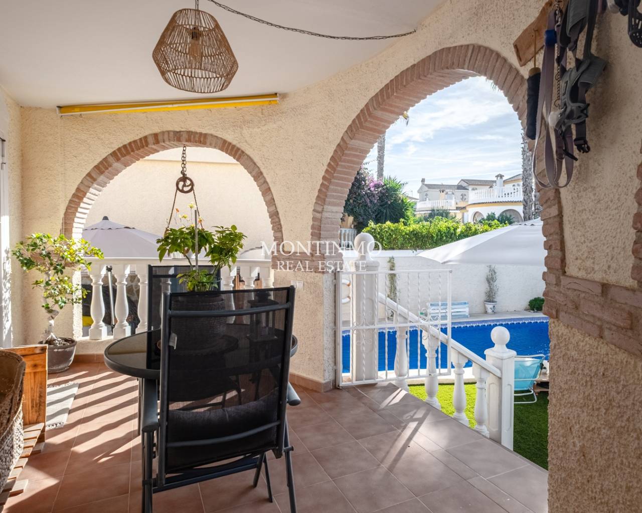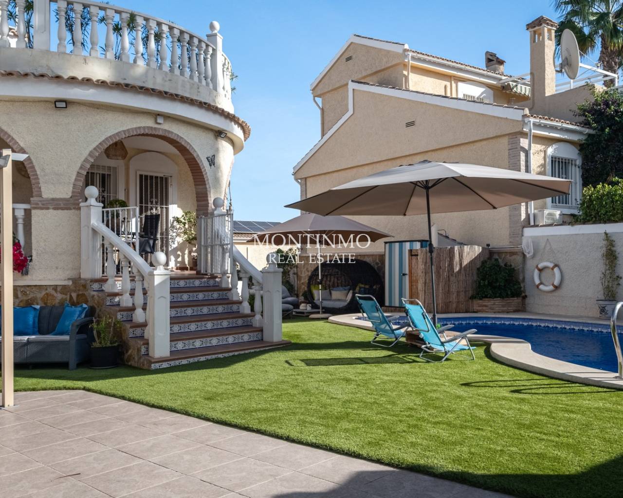 Welcome to this stunning property in Gran Alacant (Santa Pola), a highly sought-after residential area for its tranquillity, family-friendly atmosphere and proximity to the sea. Just 2-3 km from the beaches and under 10 minutes from Alicante-Elche airport, this home offers the perfect blend of comfort, independence and authentic Mediterranean lifestyle. Built on a private 380 m² plot, this villa offers 262 m² of living space across three levels, combining spaciousness, privacy and functionality. Basement with independent entrance: A self-contained unit with 3 bedrooms, 1 bathroom and a full kitchen—ideal for guests, rental or autonomous living.Ground floor: The heart of the home with 2 bedrooms, 2 bathrooms, a fully equipped kitchen and a luminous living room opening onto the garden and pool.Upper floor: A charming master suite with en-suite bathroom and access to a 40 m² solarium, perfect for enjoying the Mediterranean sun and open views. This property is in excellent condition, meticulously maintained and upgraded with sustainability in mind. Features include air conditioning, solar panels, fireplace, outdoor shower and space for 2-3 cars on the plot. Thanks to these improvements, it holds an energy rating of B, a rare quality in the area, ensuring comfort and energy savings year-round. Located in one of the most practical and in-demand zones of the Costa Blanca, it offers tranquillity combined with excellent connectivity: only 10 km from El Plantío golf course, 2-3 km from the beaches of Arenales del Sol and Carabassí, and surrounded by supermarkets, restaurants, international schools and public transport. Whether for private use or as an investment, its versatile layout and high potential make it a top choice.