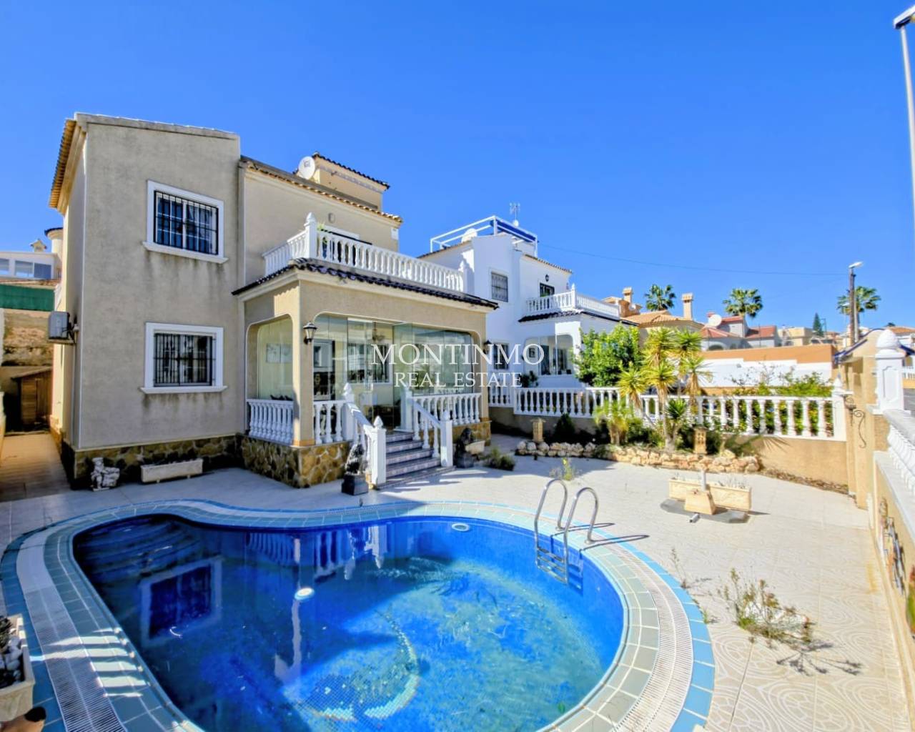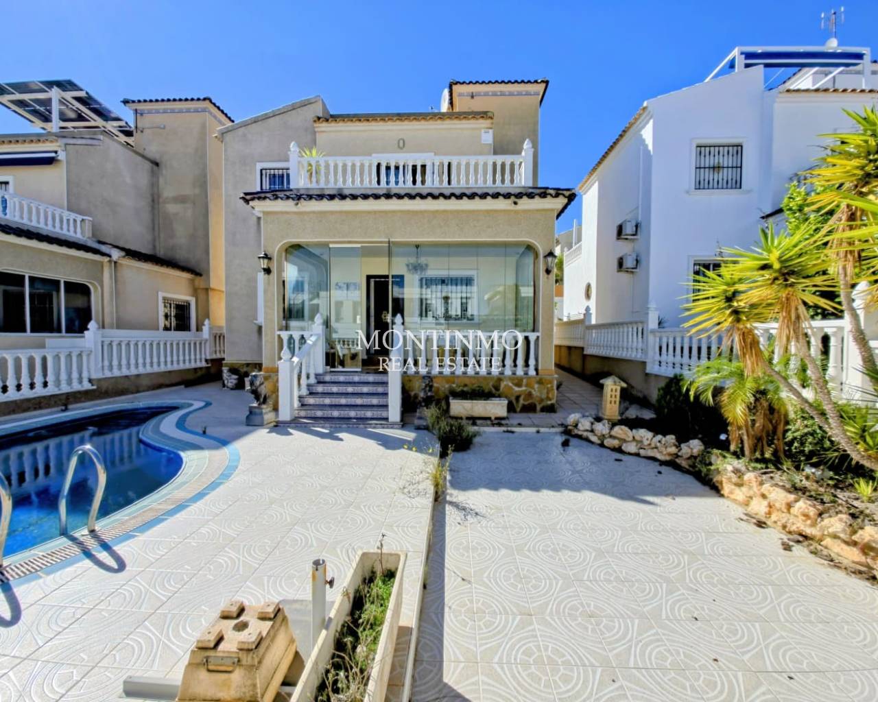FOR SALE 270 m² detached house located in the Las Filipinas - Blue Lagoon residential area, a short drive from shops, services, and amenities. Quiet area. Close to the golf course. The house boasts numerous amenities, including a private pool, garage, and garden. The spacious house features 3 bedrooms, 2 bathrooms, a separate kitchen, a utility room, a large living room, terraces, and a storage room. It is being sold furnished and with appliances. Property tax (IBI): approximately €500/year. No community fees. Price: €330,000 Ref. V673A For more information or to schedule a viewing, please contact us at +34 656 638 173 or email us at info@amestate.es