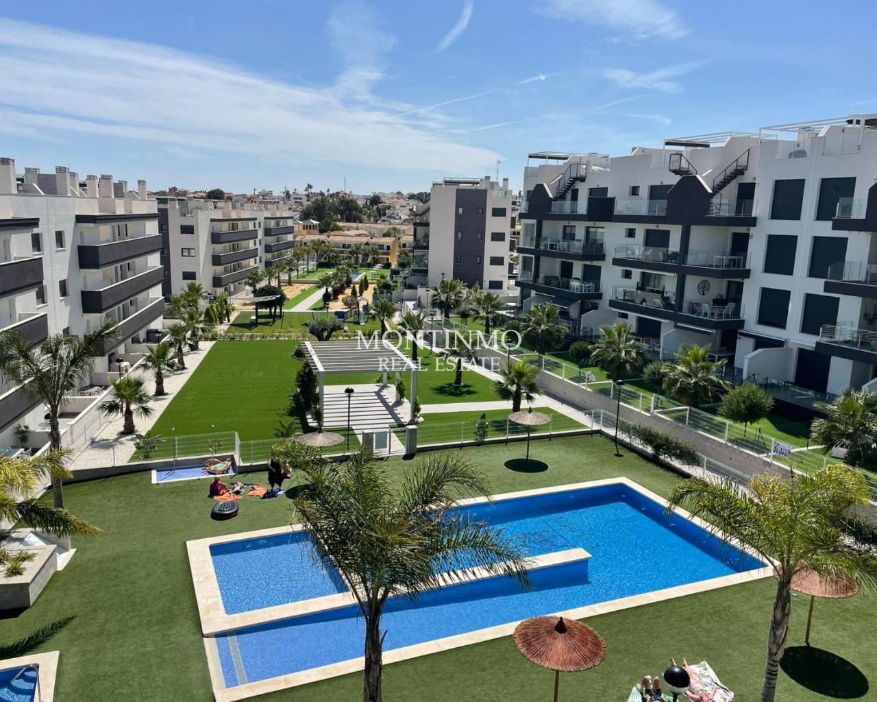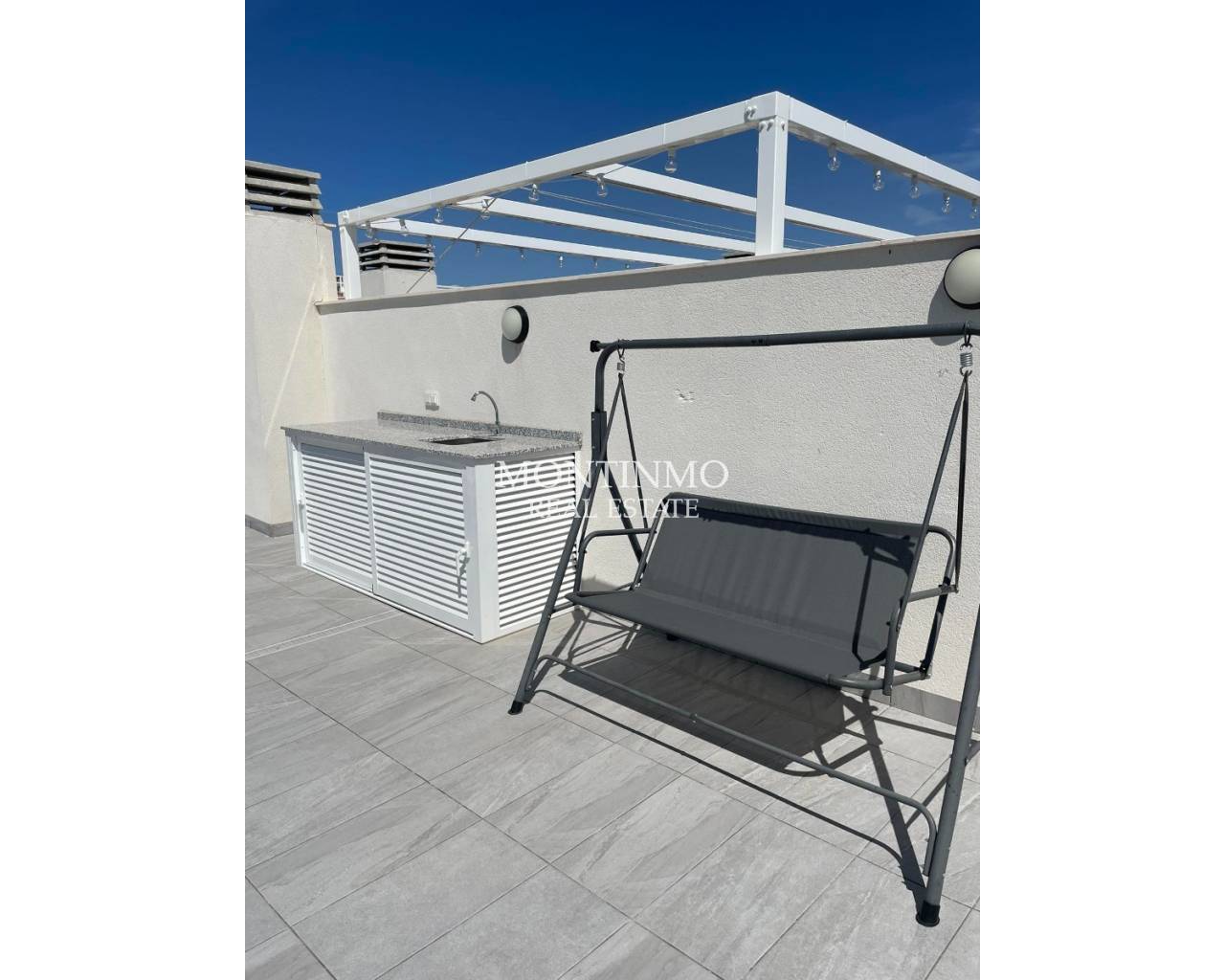 In your search for a recent appartment, don't miss a visit to this stunning penthouse! The bright apartment with its American open kitchen, complete with all amenities, makes it an ideal place for cooking and entertaining. The views of the beautiful garden and communal pool are definitely a plus.The terrace and large solarium, equipped with an aluminium lounge set, sun loungers and a canvas pergola, are perfect for soaking up the sun and relaxing outdoors.After a day in the sun, it is blissful to sleep in one of the two bedrooms, one of which has an en suite bathroom. With a private garage and basement, there is plenty of parking and extra storage space available. Proximity to Villamartin Plaza and golf courses also adds a lot of value to the location. It really does sound like a luxurious and relaxed lifestyle! If you want your own place here on the Costa Blanca this summer, don't hesitate any longer. All you need to bring is your good mood, as the sun is already there and the apparmement is being sold fully furnished.