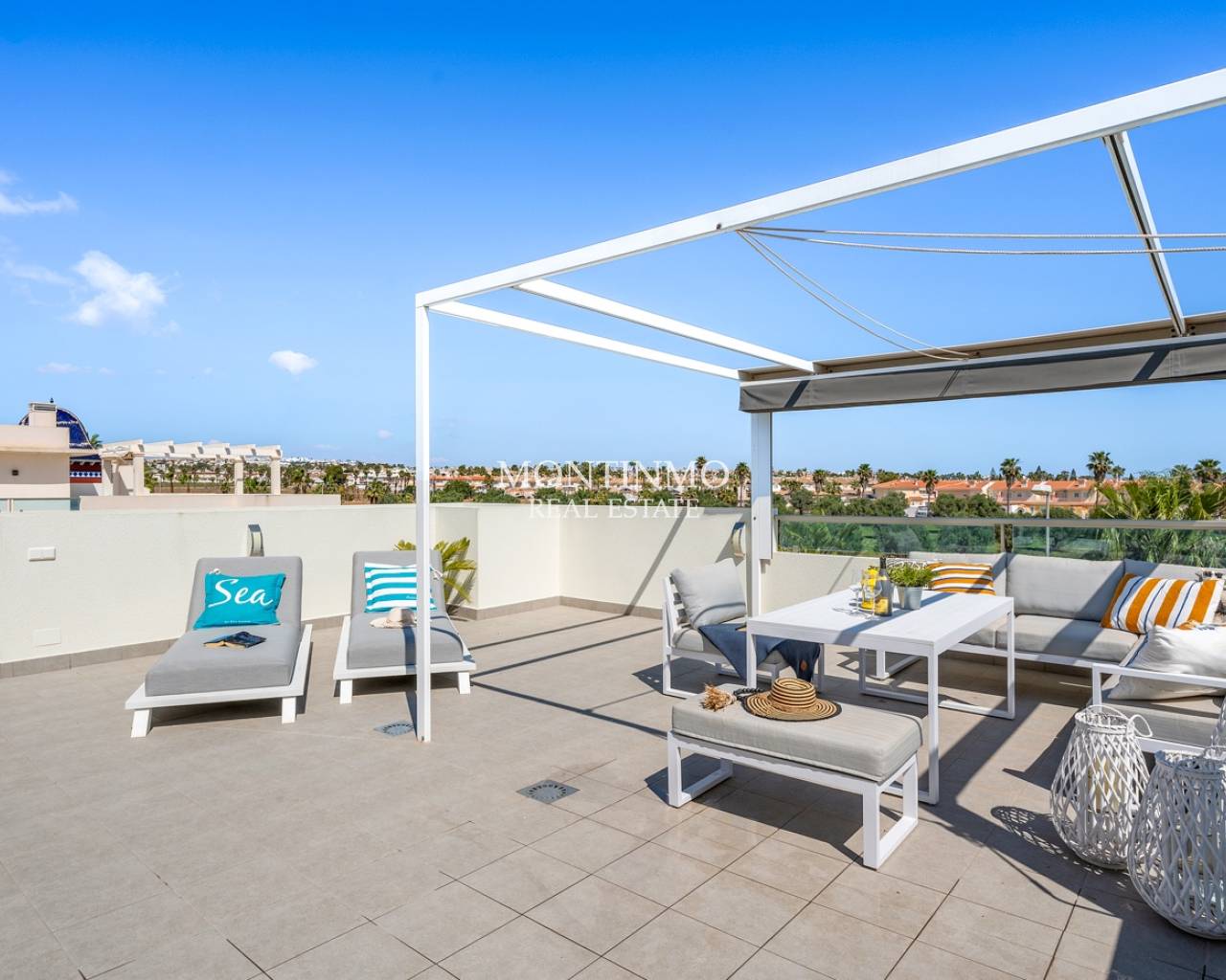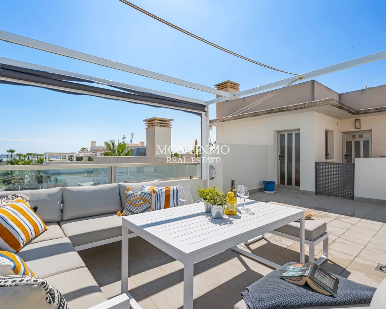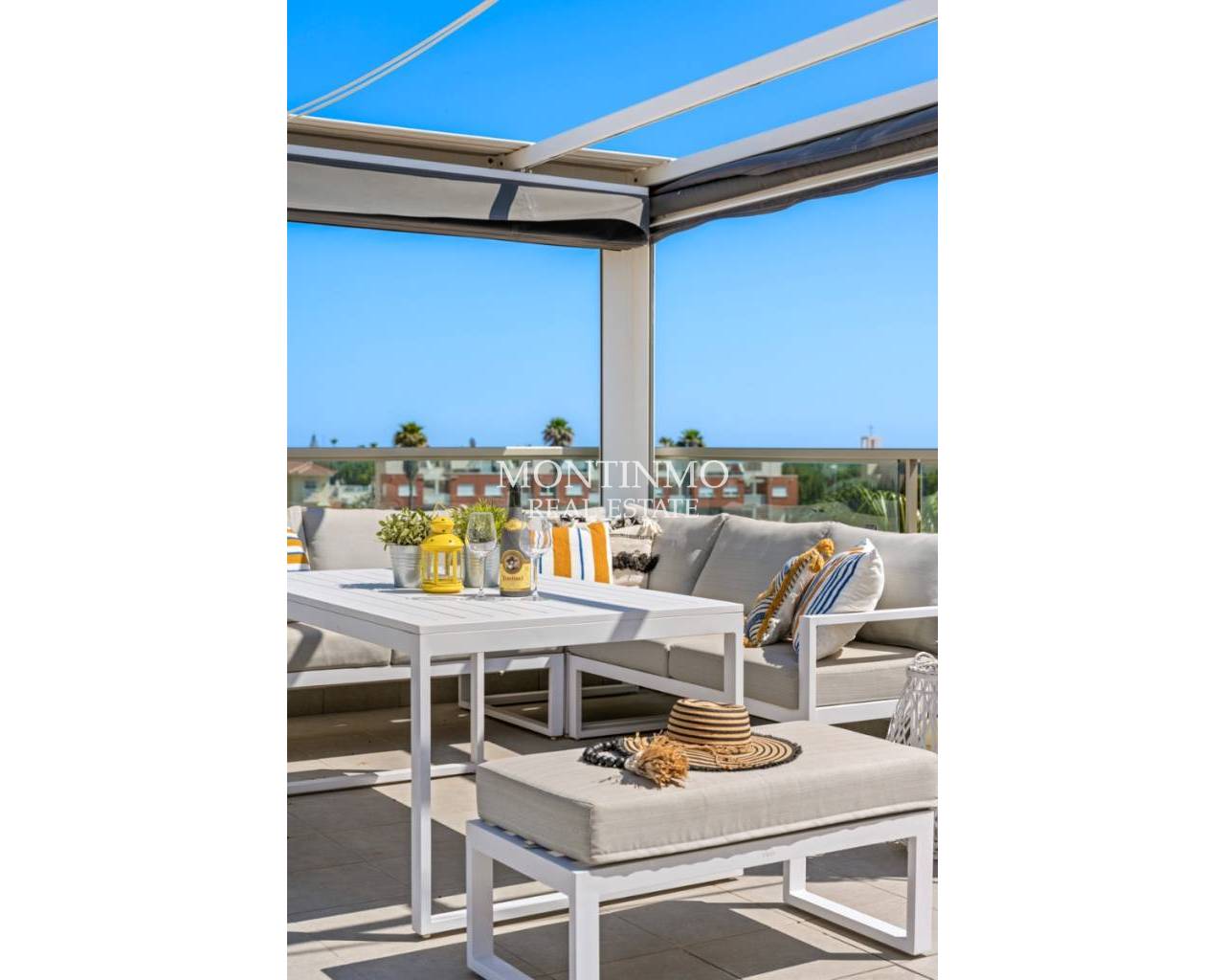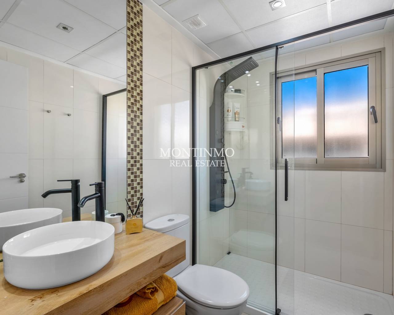 Welcome to this stylish and well-presented penthouse apartment, ideally located in a highly attractive and well-maintained community. This property combines modern interior design with exceptional outdoor space, offering a perfect balance of comfort, convenience, and Mediterranean lifestyle. Property Highlights: Spacious private rooftop terrace with beautiful open viewsSun all day – ideal for relaxing and entertainingElevator access all the way to the rooftop level2 bedrooms and 2 fully renovated bathroomsModern interior with decorative wood slat walls and tasteful finishesElectric blinds installed on windowsLarge external private storage roomAccess to a well-kept community pool The rooftop terrace is the standout feature of this home — offering plenty of space for dining, lounging, and enjoying the panoramic surroundings from morning to evening. Location: The property is perfectly situated within walking distance of all amenities: Less than 20 minutes walk to the town centerShort walking distance to Doña Pepa and the popular La Laguna Hotel This is a fantastic opportunity to acquire a move-in ready penthouse in one of the most desirable areas, ideal as a permanent residence, holiday home, or investment.