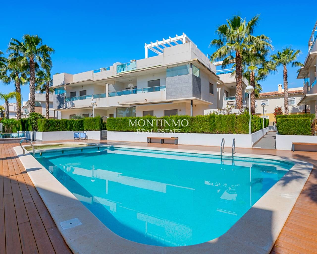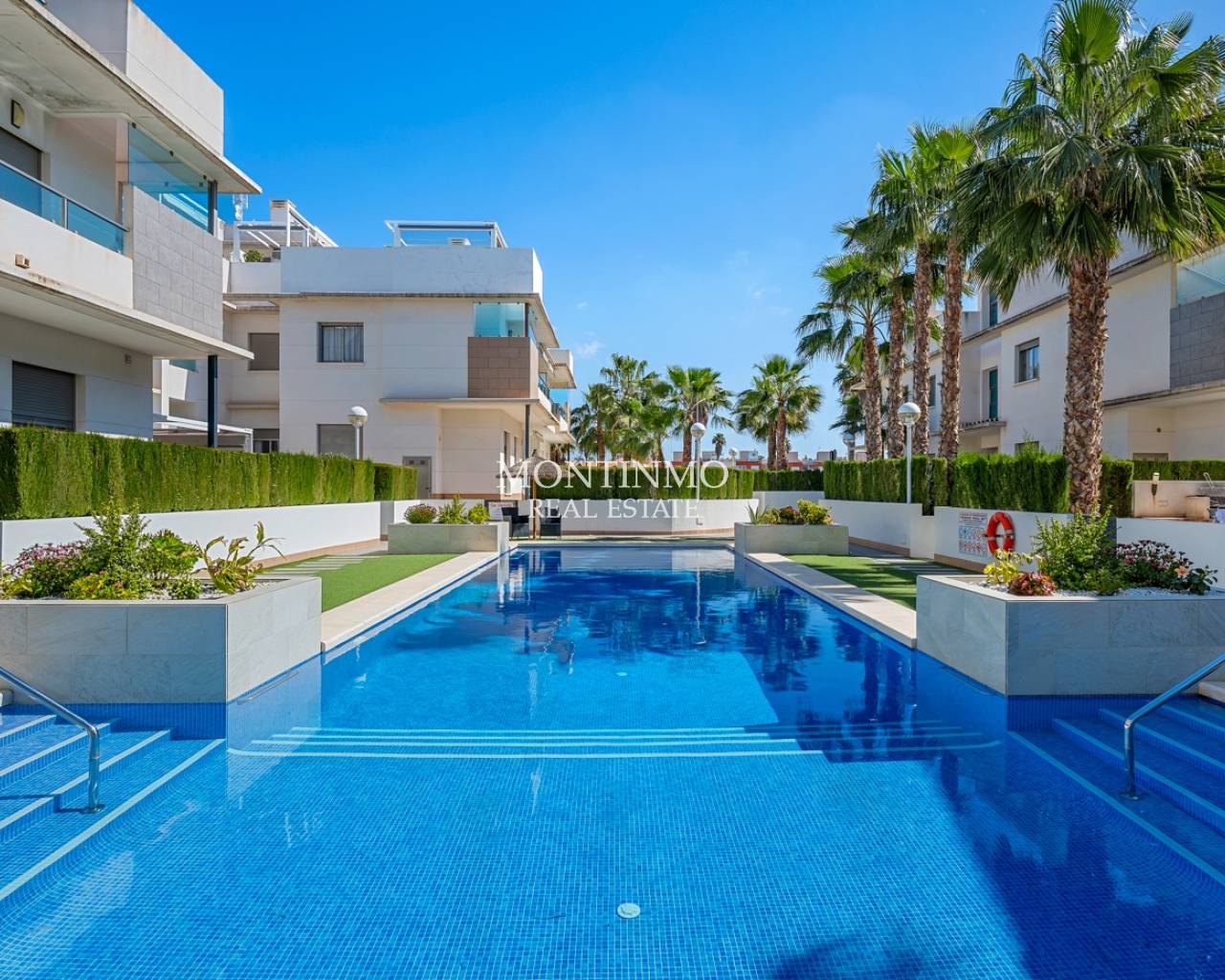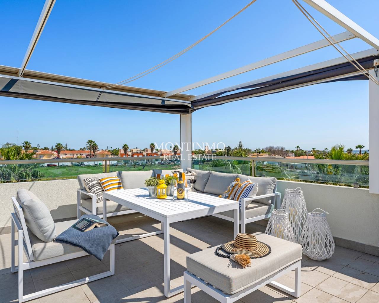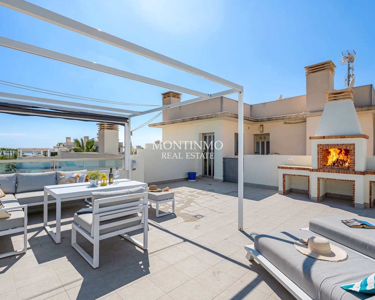Welcome to this stylish and well-presented penthouse apartment, ideally located in a highly attractive and well-maintained community. This property combines modern interior design with exceptional outdoor space, offering a perfect balance of comfort, convenience, and Mediterranean lifestyle. Property Highlights: Spacious private rooftop terrace with beautiful open viewsSun all day – ideal for relaxing and entertainingElevator access all the way to the rooftop level2 bedrooms and 2 fully renovated bathroomsModern interior with decorative wood slat walls and tasteful finishesElectric blinds installed on windowsLarge external private storage roomAccess to a well-kept community pool The rooftop terrace is the standout feature of this home — offering plenty of space for dining, lounging, and enjoying the panoramic surroundings from morning to evening. Location: The property is perfectly situated within walking distance of all amenities: Less than 20 minutes walk to the town centerShort walking distance to Doña Pepa and the popular La Laguna Hotel This is a fantastic opportunity to acquire a move-in ready penthouse in one of the most desirable areas, ideal as a permanent residence, holiday home, or investment.