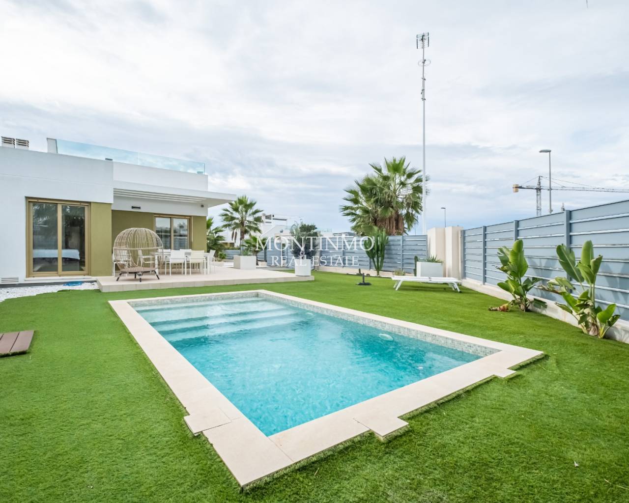 Discover Your New Home in Vistabella GolfLocated in the charming town of San Miguel de Salinas, in the prestigious area of Vistabella Golf, this magnificent villa presented by Prime Estate combines modern design, spaciousness, and perfect integration with the Mediterranean environment. With 120 m² built and a generous 405 m² lot, this property offers the ideal balance between comfort, privacy, and an outdoor lifestyle.Layout Designed for Your Well-BeingThe home features three spacious bedrooms, one of which has an en-suite bathroom, ensuring comfort and independence. The interior design prioritizes natural light and flow between spaces, creating a warm and welcoming atmosphere from the very first moment.The living room harmoniously integrates with the open-plan kitchen, an ideal space for both daily life and entertaining family and friends.Outdoor Spaces to Enjoy All Year RoundThe exterior of the villa is one of its major attractions:Large private pool, perfect for cooling off under the Mediterranean sunBBQ area, ideal for gatherings and outdoor celebrationsSolarium, a privileged space to relax, sunbathe, or enjoy the sunsetsSpacious outdoor areas with multiple possibilities for customization according to your lifestyleAmenities and SurroundingsThe villa is just a few steps from bars, restaurants, a supermarket, and other services, allowing you to enjoy the tranquility of the setting without sacrificing everyday convenience.Located directly on the Vistabella Golf course, this area is recognized for its serene atmosphere, quality infrastructure, and excellent connection to the beaches of the Costa Blanca, leisure centers, and nature.A Unique Opportunity with Prime EstateThis property represents much more than a home: it is a lifestyle. Perfect for those seeking a modern, functional home surrounded by natural beauty, managed with the guarantee and professionalism of Prime Estate.Come discover your new beginning in Vistabella Golf, where every day feels like a holiday!