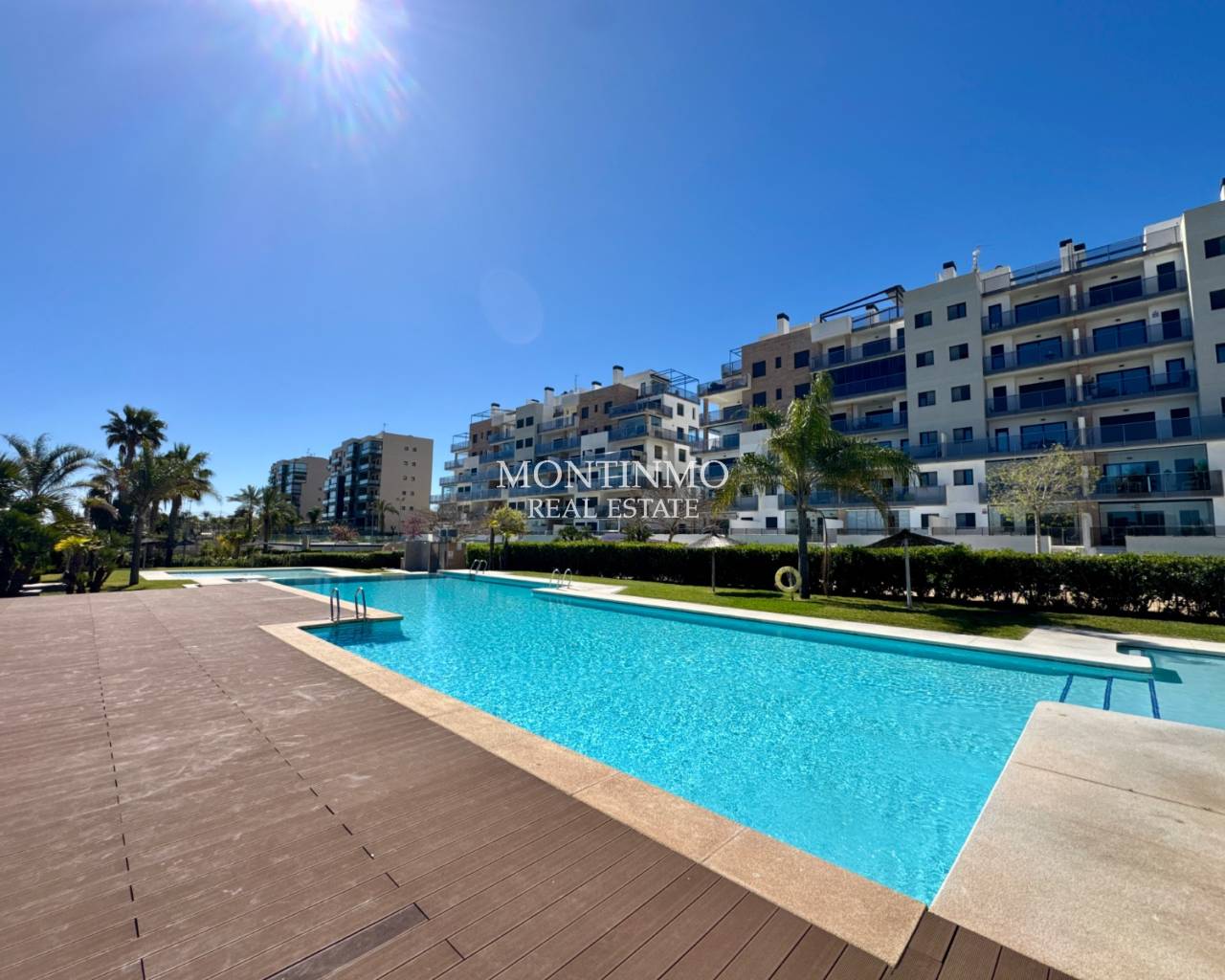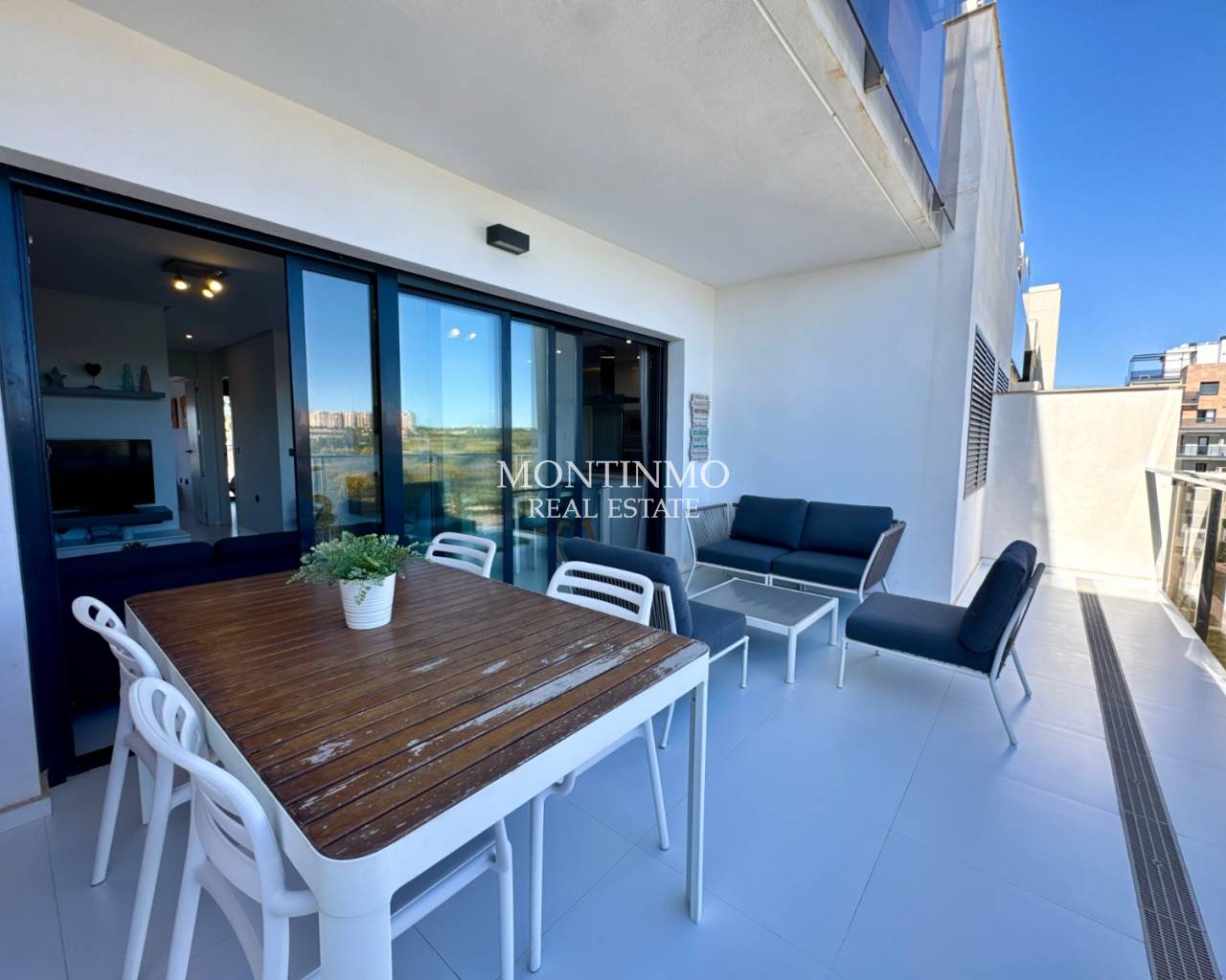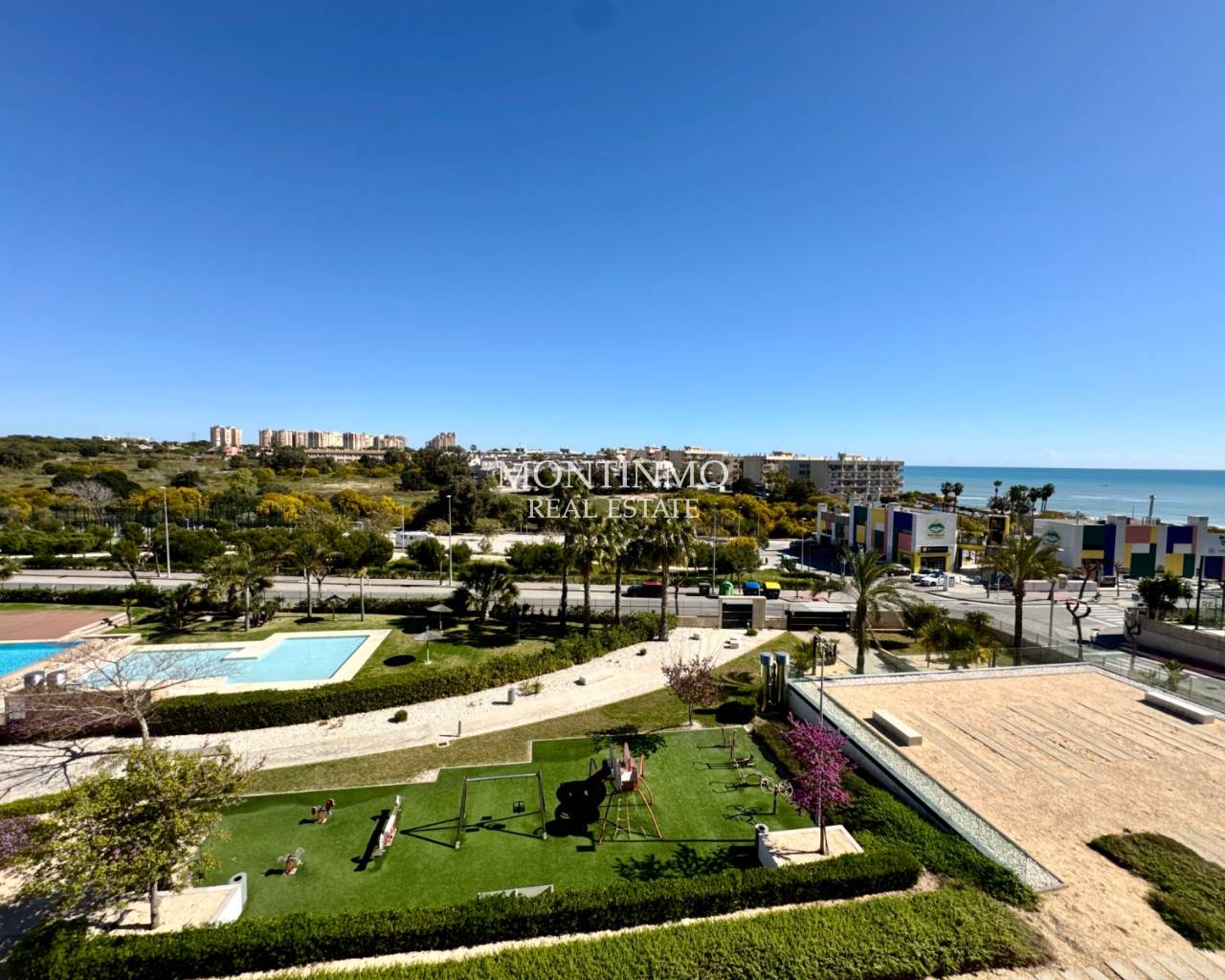 Discover this magnificent apartment located in the heart of the highly sought-after Mil Palmeras urbanization, just 250 meters from the white sand beaches. An exceptional location, renowned for its idyllic setting, lively beach bars open year-round, and immediate proximity to all amenities: paddle tennis, pharmacy, shops, and restaurants. A unique living environment Located in a secure, upscale residence, this apartment benefits from a spectacular communal area including: A large adult swimming pool with sunbed area A children's pool Green spaces and a playground A fully equipped gym High-quality amenities Located on the 3rd floor, this northeast-facing apartment offers breathtaking panoramic sea views, perfect for enjoying the cool air on summer days. It comprises: An open-plan kitchen A bright living/dining room Two bedrooms Two bathrooms (one en suite) A laundry room Outdoor spaces A superb 19m² front terrace with sea views A second 4m² terrace adjoining the master bedroom Comfort and security Gated and secure residence Underground parking space Storage cellar ideal for bicycles, beach equipment, or golf equipment Ideal location A perfect location for those who enjoy seaside walks, cycling, or golf. Take advantage of the many nearby restaurants, offering everything from fresh seafood to international cuisine. Just: 5 km from Pilar de la Horadada 8 km from La Zenia Boulevard A sound investment! Thanks to its exceptional location and highly sought-after sea views, this apartment offers excellent rental potential. The community grants tourist license applications. Community fees are in this case increased by 20%. A rare opportunity not to be missed! Contact us now to arrange a visit. IBI: €260/year Community fees: €105/month