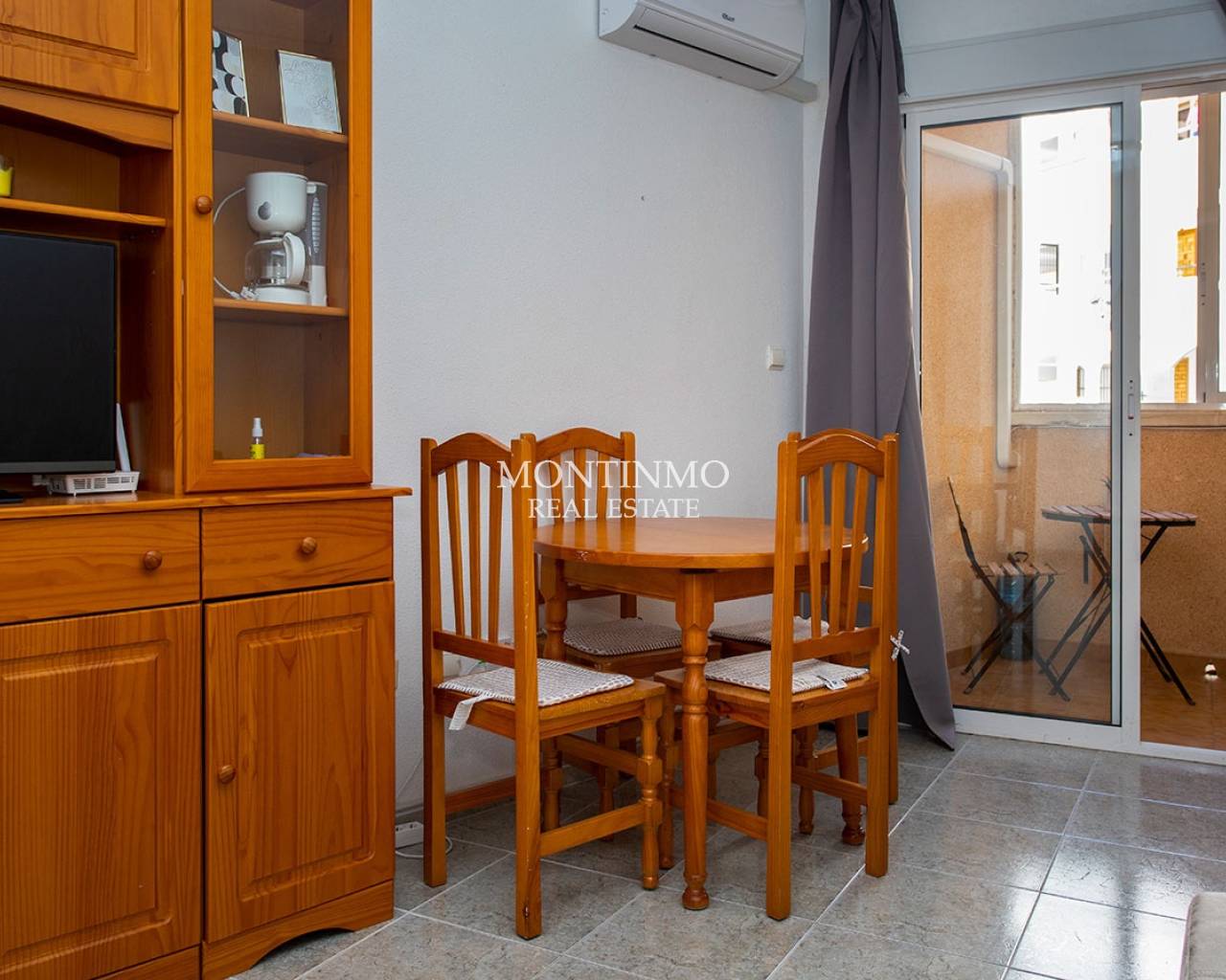 This charming studio apartment is just 300 meters from the golden sands of Playa del Cura, where you can enjoy the sun, the gentle sound of the waves, and refreshing dips in the Mediterranean Sea. Thanks to its prime location, numerous cozy bars, tapas restaurants, and ice cream parlors are within easy reach—perfect for a relaxed lunch or an evening full of Spanish ambiance. The beautiful beaches of Torrevieja are less than a 5-minute walk away, allowing you to enjoy sun, sea, and sand in no time. The studio itself is comfortably and practically furnished: a separate bathroom with a shower, a sofa bed, TV, air conditioning, and WIFI. Additionally, there is a fridge, washing machine, microwave, coffee maker, and other convenient amenities. The complex features a communal swimming pool, where you can cool off and relax on hot summer days. If you are looking for a property where everything is within walking distance and you don’t need a car to get around, this is the ideal place for you. Note: the studio is an open-plan space without a separate bedroom, making everything cozy and inviting.