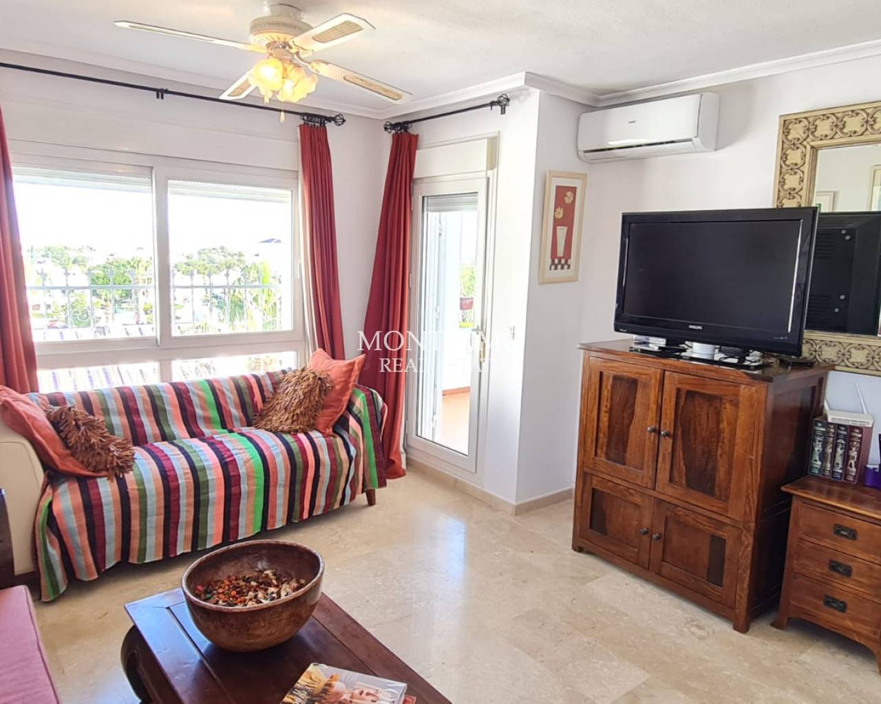 Situé dans le quartier résidentiel très prisé de Villamartin Pau-8 à Orihuela Costa, ce penthouse d'angle lumineux offre une occasion exceptionnelle d'acquérir un logement spacieux et baigné de lumière dans l'un des emplacements les plus recherchés de la Costa Blanca Sud, à proximité immédiate des commodités. Offrant 80 m² d'espace de vie aux proportions harmonieuses et une agréable terrasse pour prendre le petit-déjeuner au soleil, l'appartement comprend deux chambres spacieuses et deux salles de bains bien équipées. La suite principale dispose d'une salle de douche privative, créant un havre de paix confortable et intime, tandis que la salle de bains d'invités est équipée d'une baignoire, alliant fonctionnalité et confort.Le penthouse bénéficie d'un emplacement d'angle très prisé, laissant entrer une lumière naturelle abondante tout au long de la journée, ce qui renforce la sensation d'espace et d'ouverture. Le balcon privé donne sur de jolis jardins paysagers et offre un cadre paisible pour dîner en plein air ou se détendre sous le climat méditerranéen. L'appartement a été entièrement repeint et est proposé non meublé, ce qui permet au nouveau propriétaire de personnaliser l'intérieur selon ses propres goûts et son style. Il bénéficie en outre de la climatisation réversible et d'un système d'alarme intégré. L'immeuble est équipé d'un ascenseur, garantissant un accès sans effort. Les résidents profitent également d'un vaste solarium commun sur le toit, un espace impressionnant conçu pour prendre le soleil et se détendre toute la journée. Ce complexe résidentiel sécurisé dispose d'une grande piscine commune magnifiquement entretenue, ainsi que d'un parking privé clôturé réservé exclusivement aux résidents, alliant commodité et sécurité. L'emplacement est exceptionnel. La propriété se trouve à seulement 10 minutes à pied (environ 800 mètres) de Villamartín Plaza, réputée pour son ambiance animée et son excellent choix de restaurants, cafés, bars et services de première nécessité. Le penthouse est entouré de quatre prestigieux parcours de golf : Villamartín Golf, Real Club de Golf Campoamor, Las Ramblas Golf et Las Colinas Golf, ce qui en fait un choix idéal pour les amateurs de golf.À seulement 5 minutes en voiture, vous trouverez le célèbre Zenia Boulevard, qui abrite plus de 150 boutiques, restaurants et installations de loisirs, ainsi que les plages de sable doré d'Orihuela Costa, réputées pour leurs eaux cristallines. Les aéroports internationaux d'Alicante-Elche et de Murcie-Corvera sont facilement accessibles en environ 45 minutes par l'autoroute A7, garantissant ainsi une excellente connectivité pour les voyages internationaux.Ce penthouse raffiné allie à la perfection espace, intimité et emplacement de choix, ce qui en fait un choix exceptionnel comme résidence de vacances exclusive, élégante résidence permanente ou investissement de grande qualité. Contactez-nous dès aujourd'hui pour organiser une visite !