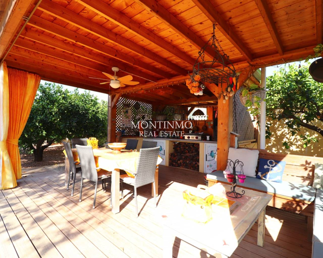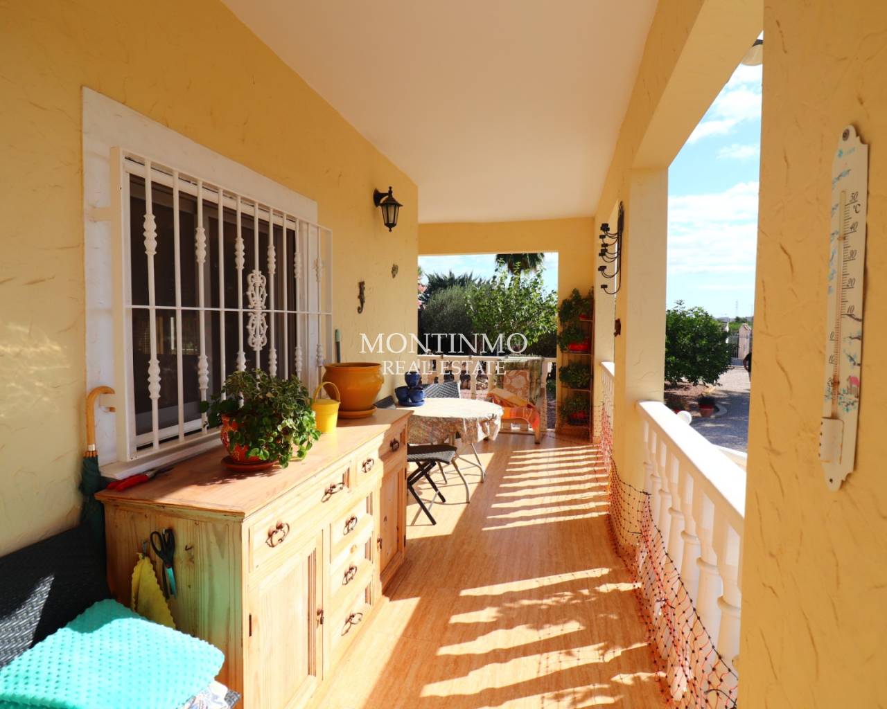 Cette villa de campagne indépendante de trois chambres, exposée plein sud, est située à La Campaneta, au cœur de magnifiques vergers d'agrumes, avec un magnifique paysage de montagnes en toile de fond. Le charmant village de La Campaneta et San Bartolomé, ainsi que les commerces et l'hôpital, sont à seulement 5 minutes en voiture. La ville historique d'Orihuela est accessible en 10 minutes, le complexe hôtelier 5 étoiles La Finca Golf & Spa Resort en 20 minutes, et la côte et ses plages en seulement 25 minutes. Cette villa de 109 m², de plain-pied, dispose d'une charmante terrasse couverte en L de 29 m² donnant sur la piscine privée. À l'intérieur, le salon est climatisé et dispose d'une agréable cheminée d'angle avec poêle à bois ; la cuisine séparée équipée donne accès à la buanderie. La villa comprend trois chambres doubles avec placards intégrés, la chambre principale bénéficiant d'un ventilateur de plafond et d'une salle d'eau attenante. La deuxième chambre bénéficie d'un accès direct à la terrasse et au jardin par des portes-fenêtres coulissantes à double vitrage, ainsi que d'une salle d'eau familiale. Le généreux terrain de 2 322 m², agrémenté de galets et d'arbustes, offre un grand parking hors voirie, un abri voiture et un garage double à deux portes, actuellement utilisé comme atelier. L'espace extérieur est idéal : un espace barbecue, une piscine privée chauffée au sel avec couverture rétractable et plage carrelée, une cuisine couverte en bois, un bar, une salle à manger et un espace détente. La propriété bénéficie également d'un système d'irrigation et de panneaux solaires pour l'eau chaude. Une opportunité exceptionnelle pour ceux qui recherchent la tranquillité d'une vie à la campagne avec le confort moderne sur la Costa Blanca Sud.