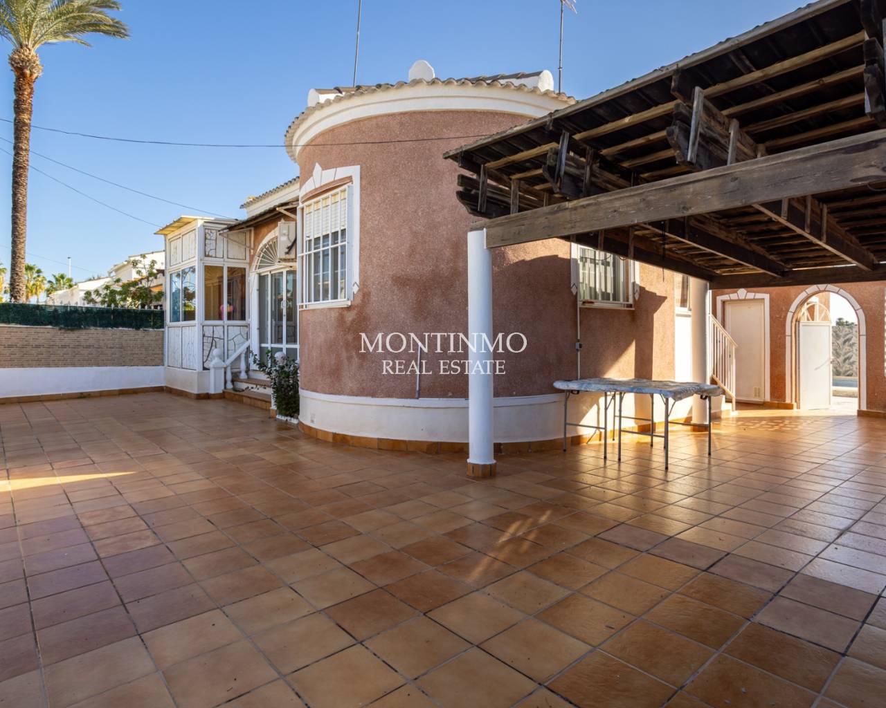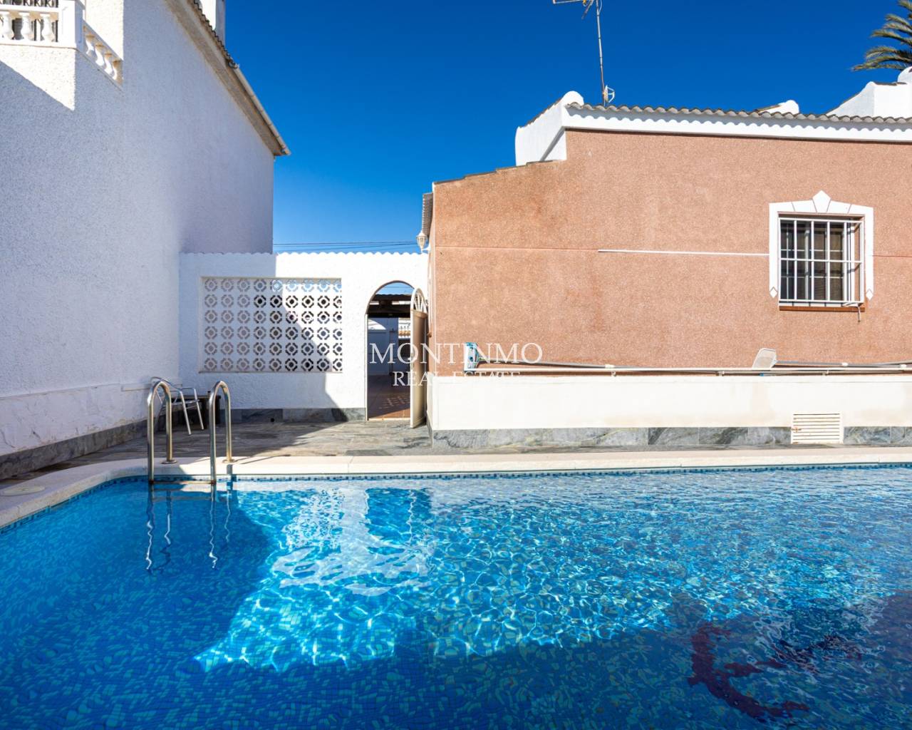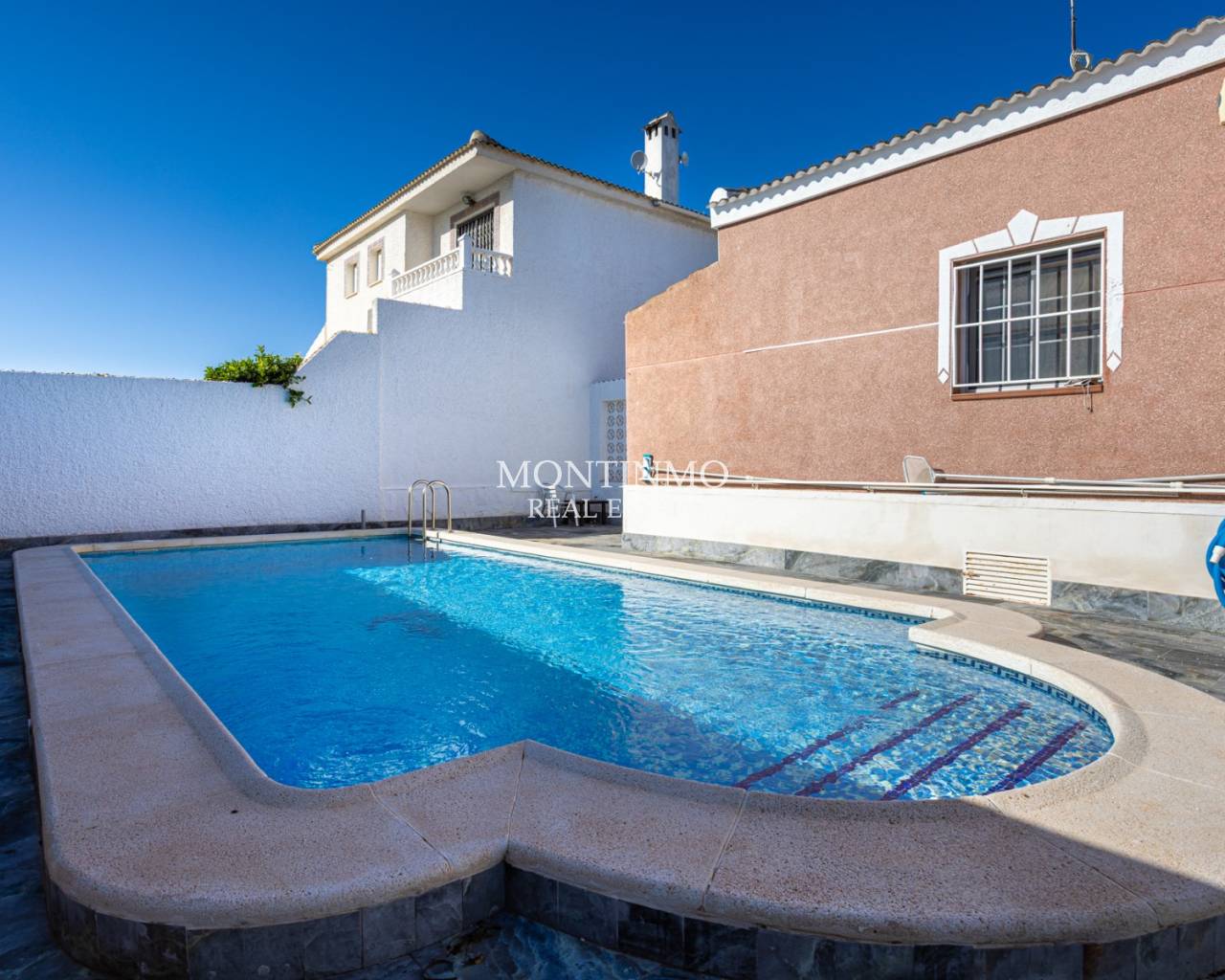 Découvrez cette charmante villa individuelle, située dans un quartier résidentiel calme et agréable de Torrevieja, idéale pour ceux qui recherchent intimité, confort et une excellente qualité de vie à proximité de la mer. La propriété s'étend sur un terrain spacieux de 300 m² et offre un vaste espace extérieur pour profiter du climat méditerranéen tout au long de l'année. Elle comprend 60 m² de surface habitable, agencée de manière pratique et fonctionnelle. À l'intérieur, vous trouverez trois chambres lumineuses, dont deux avec placards intégrés, et deux salles de bains complètes, idéales pour une famille ou pour recevoir des invités. La cuisine séparée est entièrement équipée et dispose d'une buanderie attenante pour plus de praticité et de rangement. La villa est en bon état et est vendue meublée, prête à emménager. Le salon est climatisé, assurant un confort optimal en toute saison. À l'extérieur, la propriété bénéficie d'un bel espace de loisirs avec piscine privée, parfait pour se détendre et profiter de moments conviviaux en famille ou entre amis. Elle comprend également une terrasse entièrement carrelée, idéale pour les repas en plein air, une buanderie/cellier et une place de parking privée. Son orientation ouest garantit de magnifiques couchers de soleil et une luminosité naturelle abondante l'après-midi. Situation et distances : Plage : 15 minutes Lieux de loisirs, restaurants et commerces : 5 minutes Golf : 10 minutes Aéroport : 40 minutes Cette propriété est idéale comme résidence principale, résidence secondaire ou investissement, alliant intimité, espace extérieur et emplacement privilégié sur la Costa Blanca.