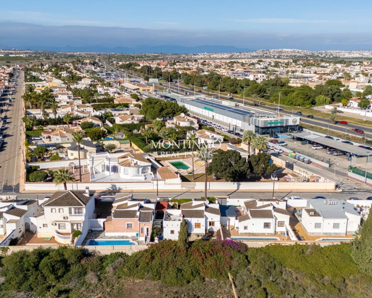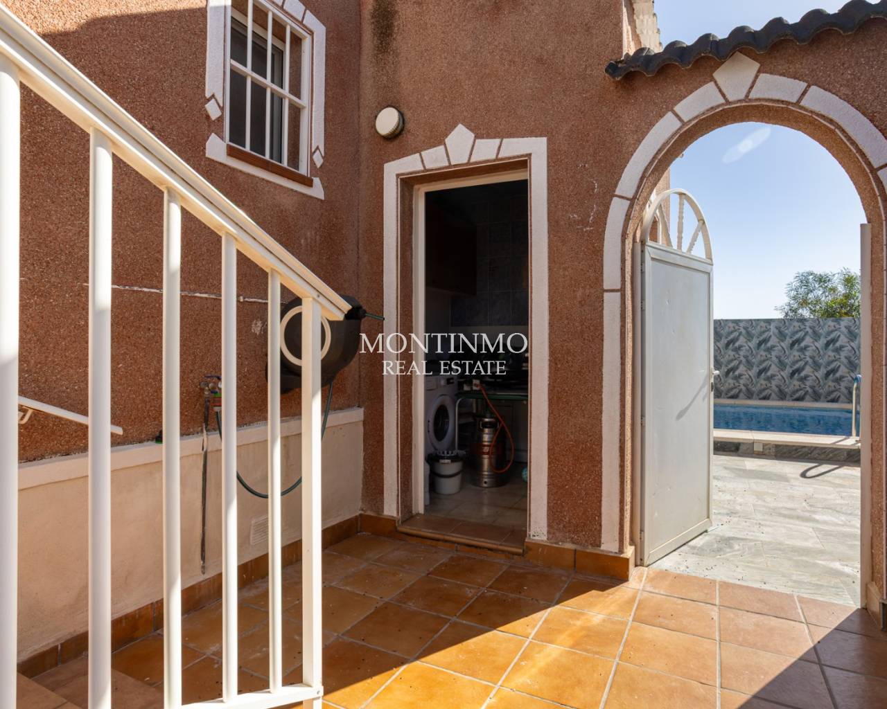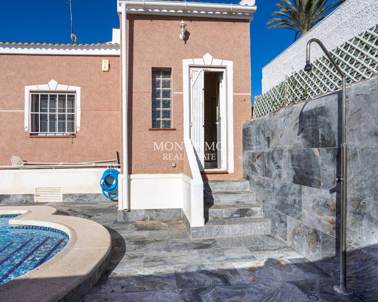Découvrez cette charmante villa individuelle, située dans un quartier résidentiel calme et agréable de Torrevieja, idéale pour ceux qui recherchent intimité, confort et une excellente qualité de vie à proximité de la mer. La propriété s'étend sur un terrain spacieux de 300 m² et offre un vaste espace extérieur pour profiter du climat méditerranéen tout au long de l'année. Elle comprend 60 m² de surface habitable, agencée de manière pratique et fonctionnelle. À l'intérieur, vous trouverez trois chambres lumineuses, dont deux avec placards intégrés, et deux salles de bains complètes, idéales pour une famille ou pour recevoir des invités. La cuisine séparée est entièrement équipée et dispose d'une buanderie attenante pour plus de praticité et de rangement. La villa est en bon état et est vendue meublée, prête à emménager. Le salon est climatisé, assurant un confort optimal en toute saison. À l'extérieur, la propriété bénéficie d'un bel espace de loisirs avec piscine privée, parfait pour se détendre et profiter de moments conviviaux en famille ou entre amis. Elle comprend également une terrasse entièrement carrelée, idéale pour les repas en plein air, une buanderie/cellier et une place de parking privée. Son orientation ouest garantit de magnifiques couchers de soleil et une luminosité naturelle abondante l'après-midi. Situation et distances : Plage : 15 minutes Lieux de loisirs, restaurants et commerces : 5 minutes Golf : 10 minutes Aéroport : 40 minutes Cette propriété est idéale comme résidence principale, résidence secondaire ou investissement, alliant intimité, espace extérieur et emplacement privilégié sur la Costa Blanca.