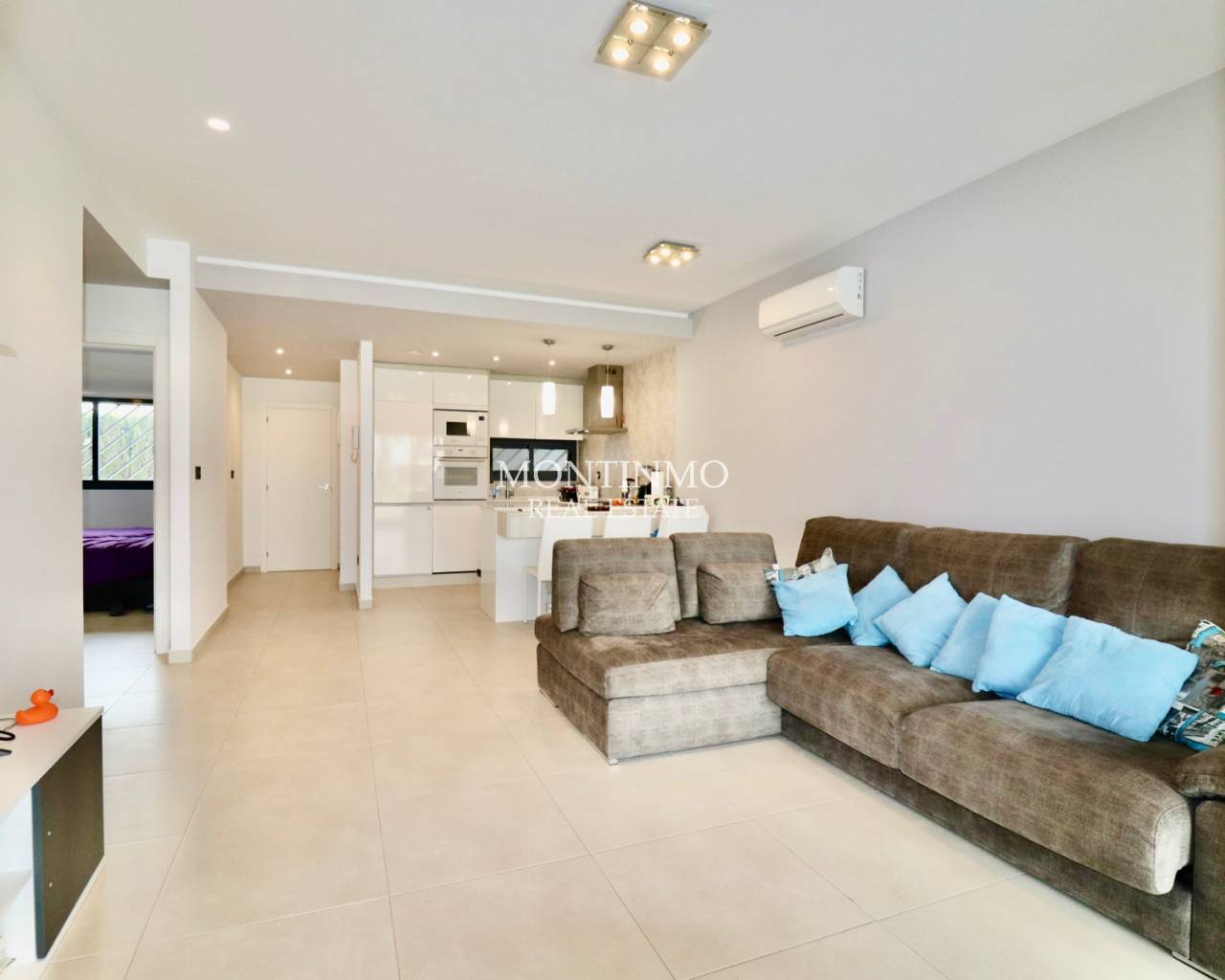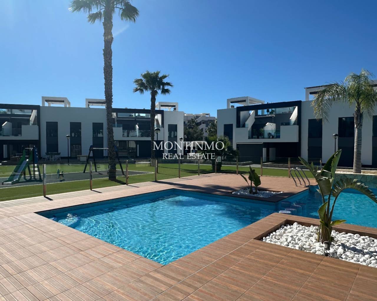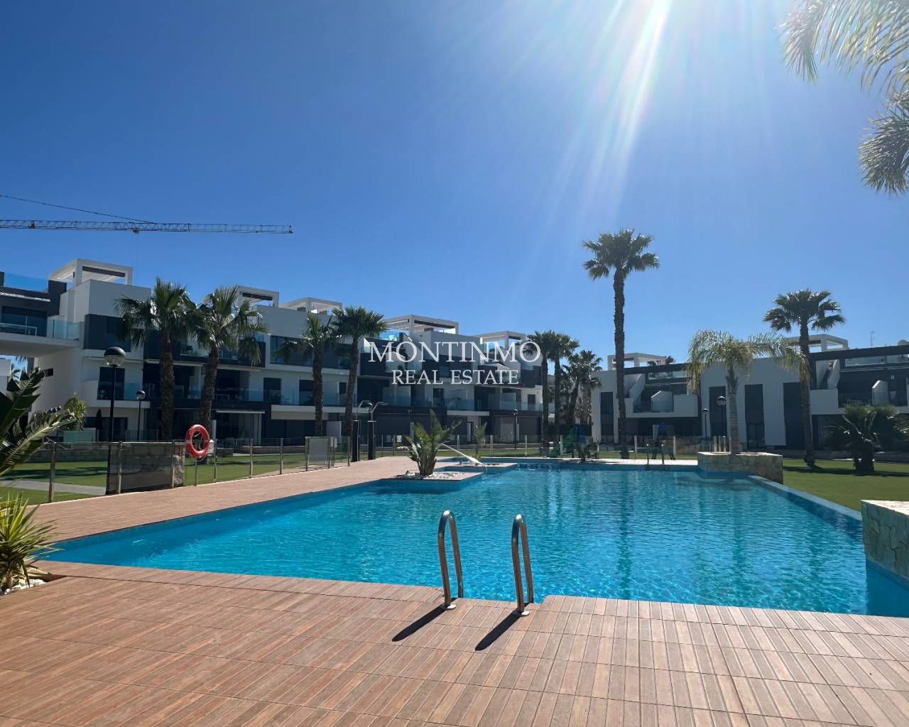 Cet appartement moderne se situe dans un quartier résidentiel calme et récent, à proximité de Guardamar del Segura, station balnéaire prisée de la Costa Blanca. Vous y trouverez toutes les commodités : cafés accueillants, boutiques, restaurants et une magnifique réserve naturelle avec des sentiers de randonnée menant au charmant port. La vaste plage de sable de Guardamar est facilement accessible et idéale pour se détendre. Sa situation centrale permet de rejoindre rapidement d'autres lieux d'intérêt, et les terrains de golf ainsi que les grands centres commerciaux sont facilement accessibles. C'est donc un endroit idéal pour de merveilleuses vacances ou pour s'y installer définitivement. Ce complexe d'appartements, de construction récente, offre calme et confort. Les résidents bénéficient de prestations haut de gamme, notamment une grande piscine extérieure entourée de jardins paysagers et un espace bien-être avec un jacuzzi. Une place de parking privée est également incluse. L'appartement, situé au rez-de-chaussée et d'une superficie de 105 m², est facilement accessible grâce à l'ascenseur de l'immeuble. L'entrée donne sur un séjour lumineux avec cuisine ouverte. De là, on accède à une vaste terrasse offrant une vue sur le magnifique jardin commun paysagé et sur l'une des deux grandes piscines. L'agencement comprend en outre une chambre principale avec salle de bains attenante et accès à la terrasse, 2 chambres, une salle de bains séparée et une buanderie/rangement pratique. Les options comprennent la climatisation (chaud/froid), des volets électriques, un interphone vidéo, des stores électriques, un système de vidéosurveillance dans tout le complexe et une livraison entièrement meublée. Guardamar del Segura est réputée pour ses vastes plages de sable fin et son agréable boulevard. Le centre-ville offre de nombreux services et une atmosphère détendue. L'aéroport d'Alicante est à seulement 30 minutes en voiture.