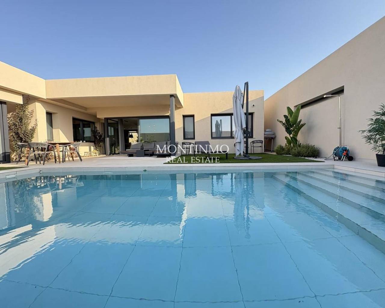 Superbe villa contemporaine récemment construite, à vendre à Las Vistas, Altaona Golf. Située dans le prestigieux quartier résidentiel fermé de Las Vistas, au sein du domaine Altaona Golf, cette villa exceptionnelle de 4 chambres et 4 salles de bains offre un mélange parfait entre design moderne, confort et intimité totale, le tout sur un seul niveau. Construite il y a seulement un an et maintenue en parfait état, la propriété est prête à être emménagée et à être appréciée immédiatement. Espaces de vie lumineux et ouverts Bénéficiant d'une orientation sud très recherchée, la villa est baignée de lumière naturelle tout au long de la journée. Le cœur de la maison est constitué d'une cuisine ouverte spacieuse et d'un salon, reliés de manière fluide à l'extérieur par de grandes portes coulissantes en verre. La cuisine moderne est entièrement équipée, avec un refroidisseur à vin, deux réfrigérateurs et un cellier/buanderie. Le meilleur de la vie en plein air Sortez dans un impressionnant jardin facile d'entretien, entièrement carrelé et conçu pour être apprécié toute l'année. La pièce maîtresse est la grande piscine chauffée de 8 × 4 m, parfaite pour une utilisation prolongée tout au long de l'année. Tout l'espace extérieur a été carrelé, ce qui facilite l'entretien du jardin et en fait un espace idéal pour se divertir ou se détendre. Confort et qualité dans les moindres détails Deux des chambres disposent d'une salle de bains attenante et les quatre sont équipées d'armoires encastrées. La maison est équipée d'un chauffage au sol dans toutes les pièces, de la climatisation (chaud et froid) dans chaque pièce, de double vitrage de haute qualité et de rideaux occultants pour une obscurité totale si vous le souhaitez. Les extras comprennent un système d'eau sous pression, une borne de recharge pour voiture électrique et un ameublement partiel de bon goût. Caractéristiques principales • 4 chambres, 4 salles de bains (dont 2 attenantes) • Aménagement de plain-pied avec une intimité totale • Exposition sud, lumineux et aéré • Piscine chauffée de 8 × 4 m • Jardin entièrement carrelé, nécessitant peu d'entretien • Chauffage au sol à l'intérieur et sur les terrasses extérieures • Fenêtres à double vitrage dans toute la maison • Station de recharge pour voiture électrique • Cave à vin + deux réfrigérateurs • Armoires encastrées dans toutes les chambres • Mobilier partiel inclus Il s'agit d'une occasion rare d'acheter une villa presque neuve dans l'un des quartiers les plus prisés d'Altaona Golf, offrant sécurité, tranquillité et un accès facile au golf, à la nature et à la ville de Murcie. Altaona Golf est un complexe privé et sécurisé situé à seulement 15 minutes de la ville de Murcie et à 20 minutes de la côte. Réputé pour son environnement naturel, son terrain de golf et ses magnifiques vues sur les montagnes, il offre tranquillité, sécurité et excellente connectivité. Le complexe dispose d'un service de sécurité 24h/24 et 7j/7, d'un club-house, d'un restaurant et d'un accès rapide aux commerces, aux services et à l'aéroport international de Murcie (RMU).