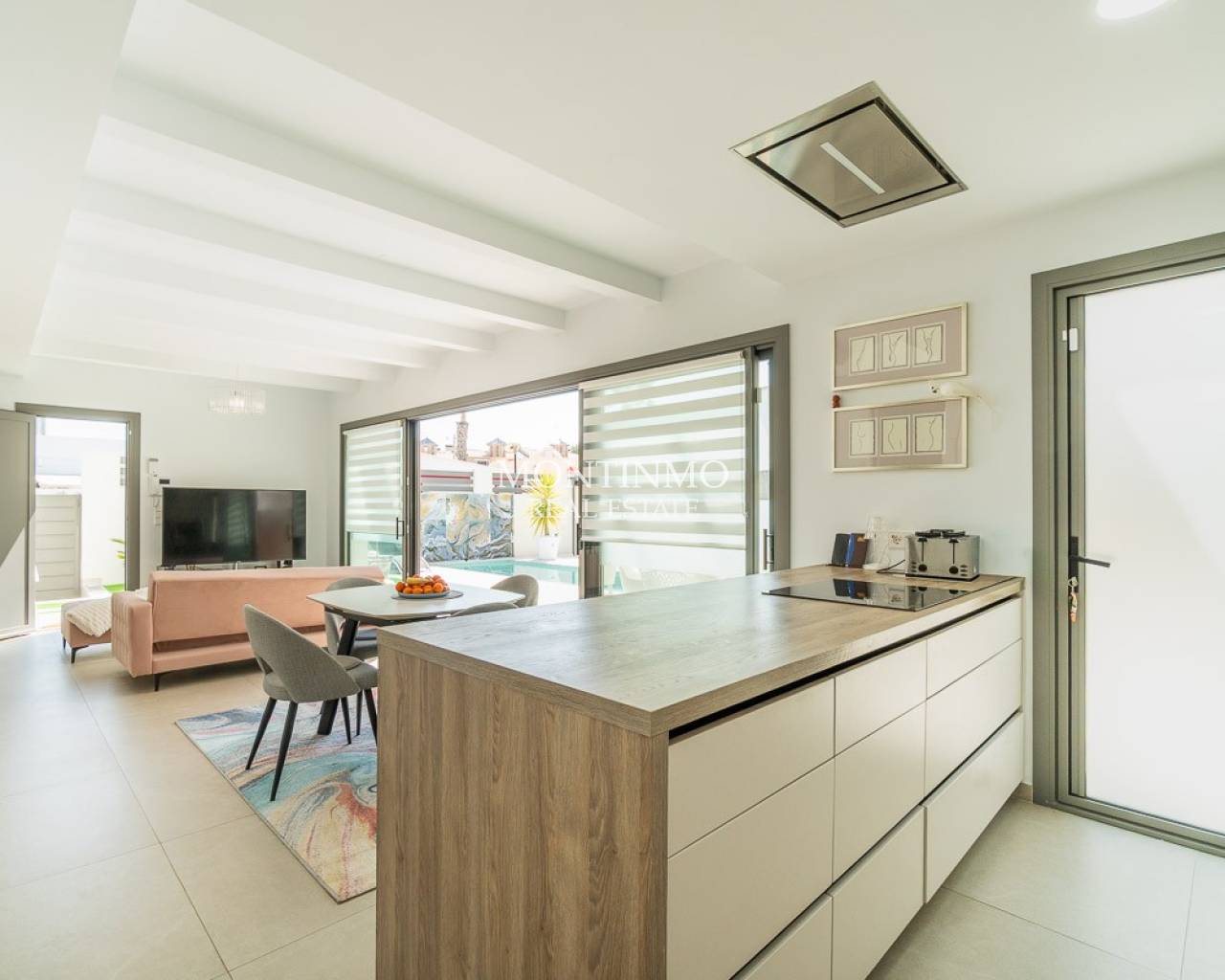 ✨ Villa Moderne de Plain-Pied : Piscine, Vue Mer et Proximité Zenia Boulevard Découvrez cette agréable villa contemporaine idéalement située à&nbsp;Orihuela Costa, entre les célèbres parcours de&nbsp;Golf de Villamartin&nbsp;et l'animation du centre commercial&nbsp;Zenia Boulevard. Un emplacement de choix pour profiter pleinement de la vie locale. Les points forts de cette maison : Confort du Plain-Pied :&nbsp;Une maison fonctionnelle et lumineuse disposant de 3 chambres et 2 salles de bains modernes.Espace Détente Privé :&nbsp;Profitez d'un jardin facile d'entretien avec sa propre&nbsp;piscine, parfaite pour se rafraîchir et se détendre sous le soleil de la Costa Blanca.Grand Solarium avec Vue Mer :&nbsp;Un vaste toit-terrasse privé offrant une vue dégagée sur la Méditerranée, l'endroit idéal pour vos repas en plein air ou vos moments de repos.Situation Stratégique :&nbsp;À quelques minutes seulement des boutiques, des restaurants et des services de&nbsp;Zenia Boulevard, ainsi que des plages de sable fin d'Orihuela.Prestations Modernes :&nbsp;Cuisine équipée, finitions actuelles et grandes ouvertures pour une belle luminosité naturelle tout au long de la journée. Une opportunité idéale pour ceux qui recherchent une maison prête à vivre, proche de tout et facile à entretenir Une opportunité rare de vivre dans une maison prête à emménager, alliant confort moderne et proximité immédiate de tous les services.