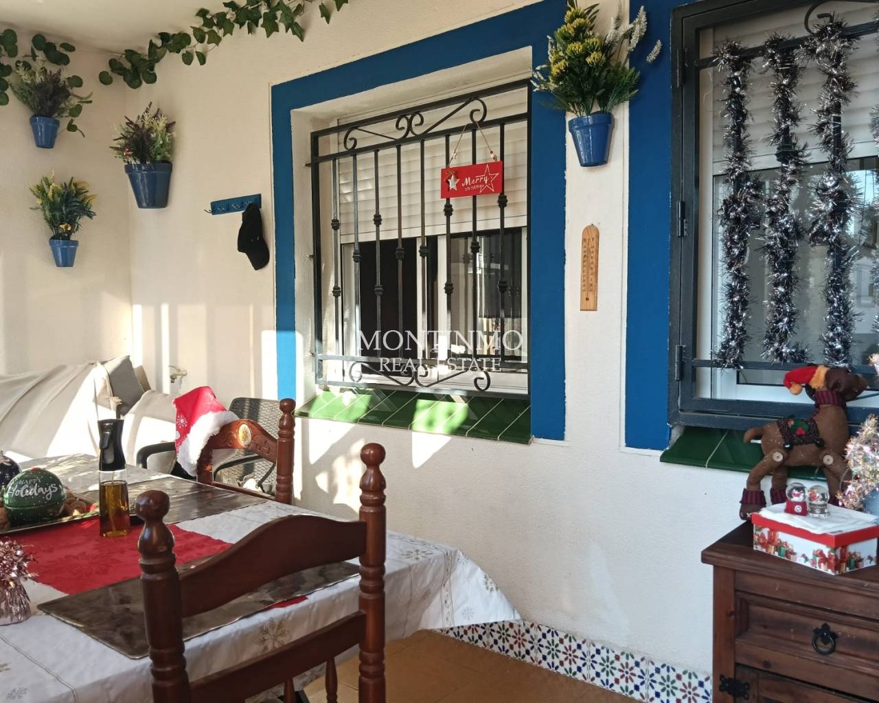 Charmant appartement de plain-pied à Los Montesinos, quartier calme et facilement accessible, idéal pour y vivre à l'année ou pour des vacances sur la Costa Blanca. Ce bien offre 63 m² de surface habitable et un généreux terrain privatif de 167 m², aménagé en une magnifique terrasse-jardin, parfaite pour profiter du plein air. Vous y trouverez un agréable espace barbecue avec bar, plusieurs coins salon et une végétation luxuriante. Dès l'entrée, vous découvrirez une accueillante véranda, idéale pour prendre le petit-déjeuner en plein air ou se détendre. Cette véranda est fermée et donc utilisable toute l'année. À l'intérieur, l'appartement comprend deux chambres lumineuses, chacune avec placard intégré, et une salle de bains récemment rénovée. La cuisine séparée offre un espace confortable et fonctionnel, entièrement équipée et donnant accès à une buanderie pratique. L'appartement est climatisé dans le séjour, assurant un confort optimal en toute saison. Les propriétaires actuels ont réalisé de nombreuses améliorations, notamment un nouveau revêtement de sol, des carreaux méditerranéens aux murs, une nouvelle salle de bains, et bien plus encore. Grâce à son orientation plein sud, cet appartement bénéficie d'une abondante lumière naturelle tout au long de la journée, créant une atmosphère chaleureuse et accueillante. Prêt à emménager, il est proposé non meublé, vous permettant ainsi de le décorer et de l'aménager entièrement à votre goût. Ce bien fait partie d'une résidence bien entretenue avec piscine commune, idéale pour se rafraîchir durant l'été. Il comprend également une place de parking privée ombragée, un cellier et une porte blindée pour plus de confort et de sécurité. L'emplacement est exceptionnel : À seulement 15 minutes des plages À 40 minutes de l'aéroport À 3 minutes des zones de loisirs, des commerces et des commodités À 10 minutes des terrains de golf Ce bien offre un fort potentiel, des espaces extérieurs exceptionnels et un emplacement stratégique, idéal comme résidence principale, secondaire ou investissement.