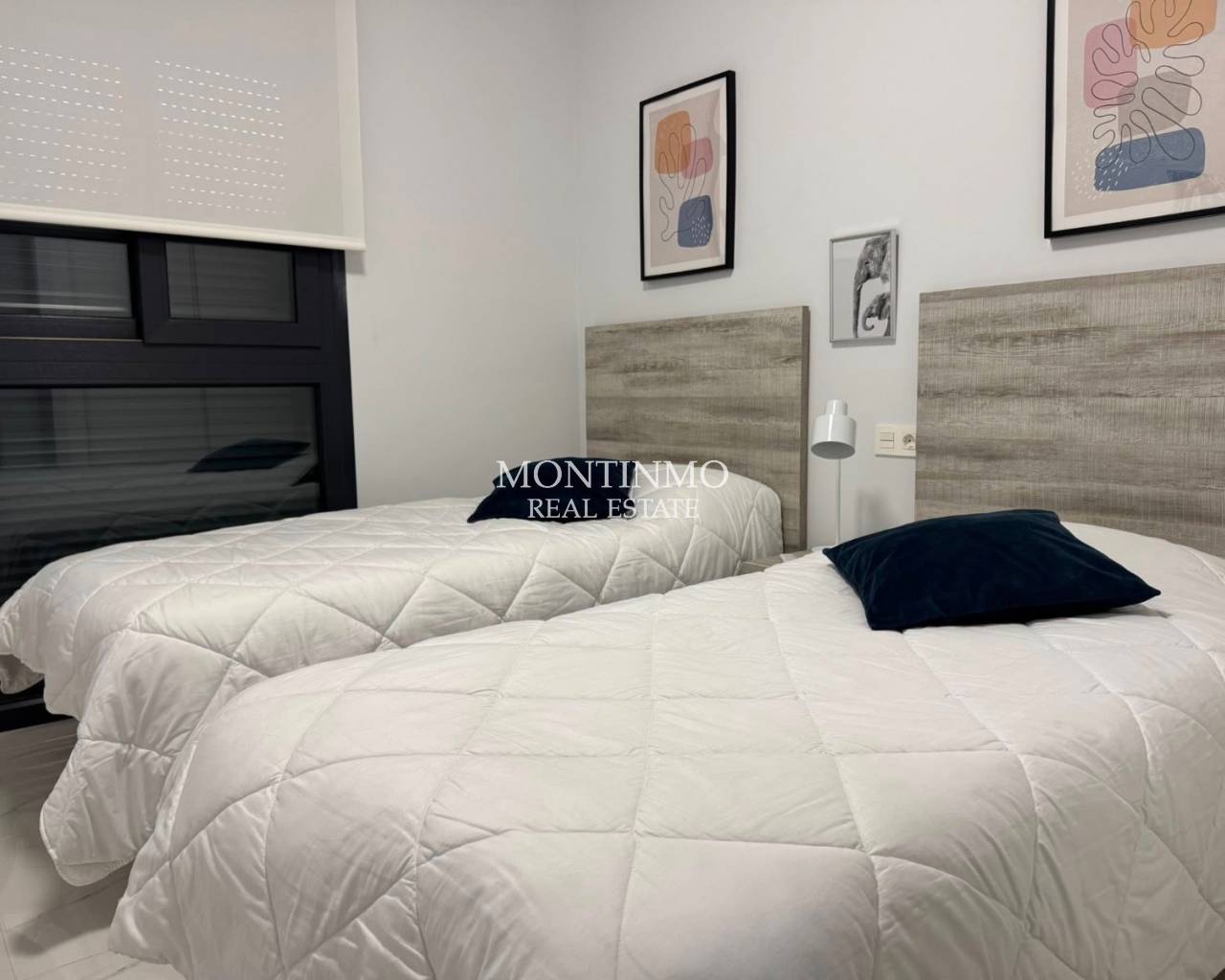 Ubicado en la cotizada zona residencial de El Raso, Guardamar del Segura, este elegante bungalow en planta baja ofrece una excelente combinación de comodidad, funcionalidad y estilo de vida mediterráneo. Ideal como residencia permanente, casa de vacaciones o inversión. La propiedad cuenta con dos amplios dormitorios y dos modernos baños, diseñados para ofrecer privacidad y comodidad. Su distribución abierta y bien distribuida crea un ambiente luminoso y acogedor. Uno de los aspectos más destacados de este bungalow son sus dos terrazas privadas, que permiten disfrutar del sol a diferentes horas del día, ideales para cenar al aire libre, relajarse o entretenerse. Desde la propiedad, también se tiene acceso directo a una piscina comunitaria impecablemente cuidada, que ofrece un entorno tranquilo rodeado de vegetación. La casa también cuenta con un garaje privado y un trastero adicional, que ofrece aparcamiento seguro y amplio espacio para bicicletas, equipo de golf o pertenencias personales, una característica cada vez más valorada. El Raso es conocido por su tranquila ubicación residencial, a la vez que se encuentra cerca de todos los servicios esenciales, como restaurantes, cafeterías, supermercados y zonas naturales como las salinas de La Mata. Las impresionantes playas de arena de Guardamar del Segura están a un corto trayecto en coche.