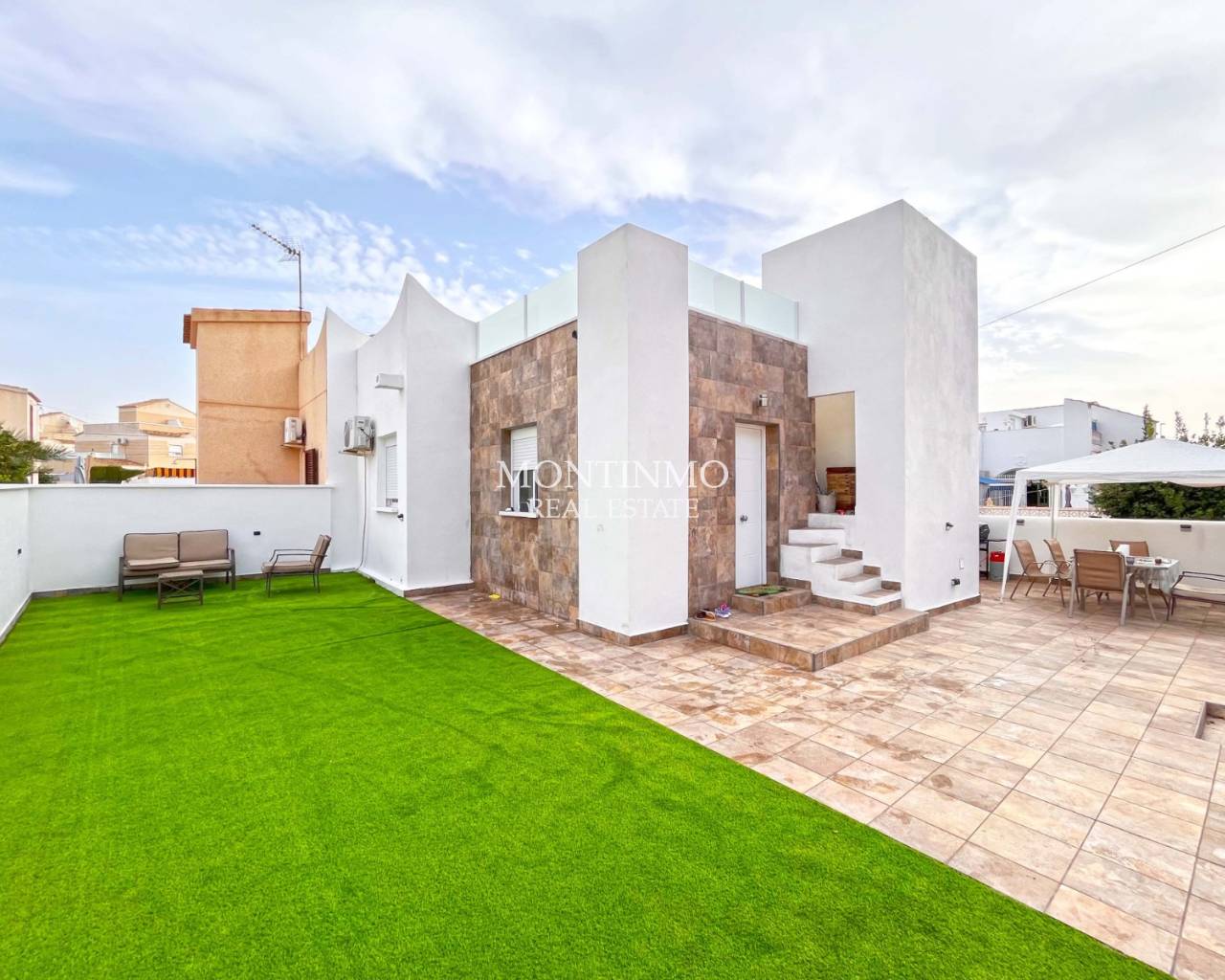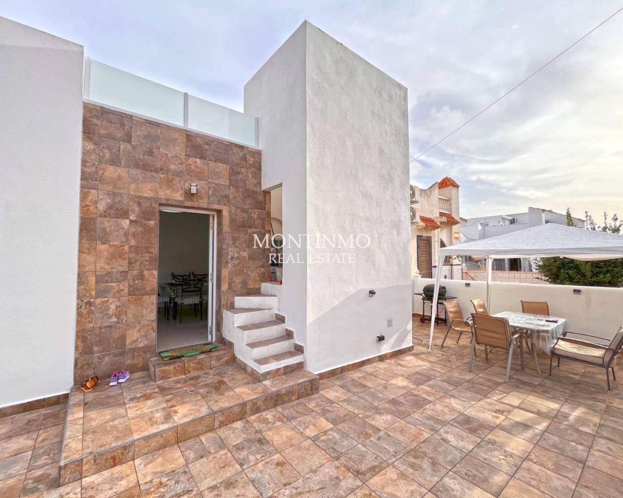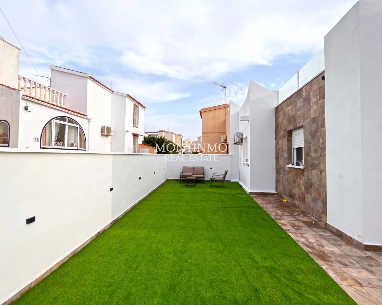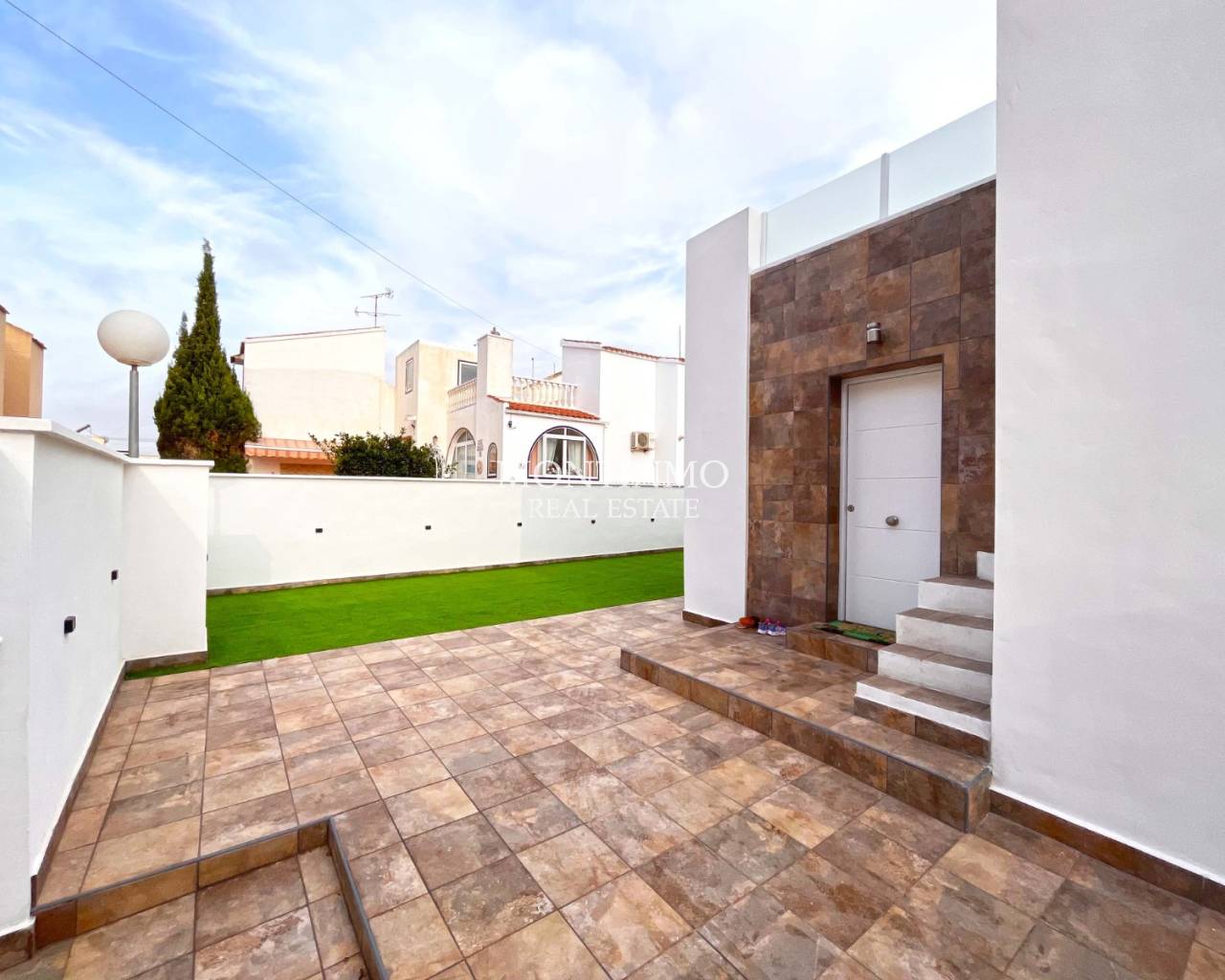 Esta hermosa casa de una sola planta en el corazón de Playa Flamenca ha sido completamente renovada, ofreciendo una combinación perfecta de comodidad moderna y vida al aire libre. Con 2 amplios dormitorios y 2 elegantes baños (uno de ellos en suite), esta vivienda está diseñada para la conveniencia y el estilo. El gran salón de planta abierta se conecta perfectamente con la cocina y el comedor, creando un espacio ideal para entretenerse o relajarse en familia. La cocina moderna está totalmente equipada con electrodomésticos de alta calidad y una amplia encimera. Sal al exterior y disfruta de la amplia terraza en la planta baja y el jardín, con suficiente espacio para construir tu propia piscina privada. La propiedad también cuenta con un gran solárium, ideal para tomar el sol, cenar al aire libre o simplemente disfrutar de la brisa mediterránea. Ubicada a poca distancia de una variedad de restaurantes, bares y servicios locales, esta casa ofrece tranquilidad y fácil acceso a la vibrante escena local. Es una oportunidad ideal para quienes buscan un hogar moderno y listo para mudarse en Playa Flamenca.