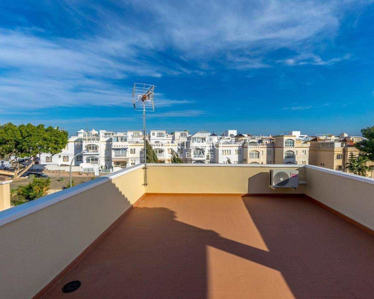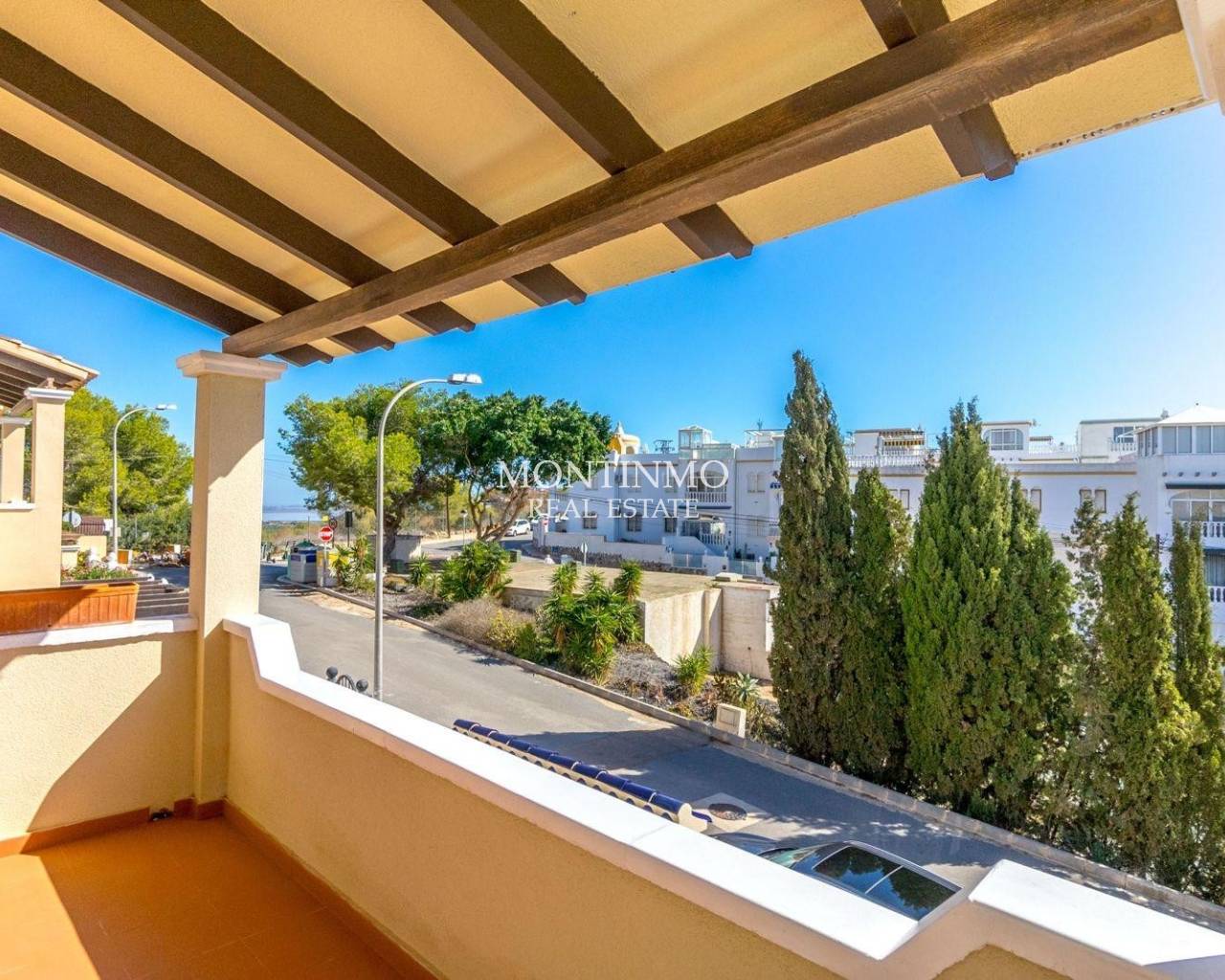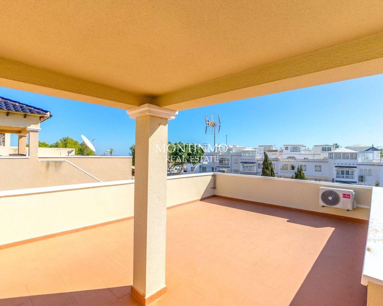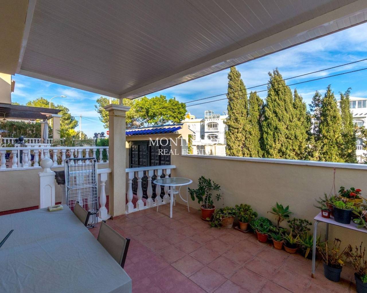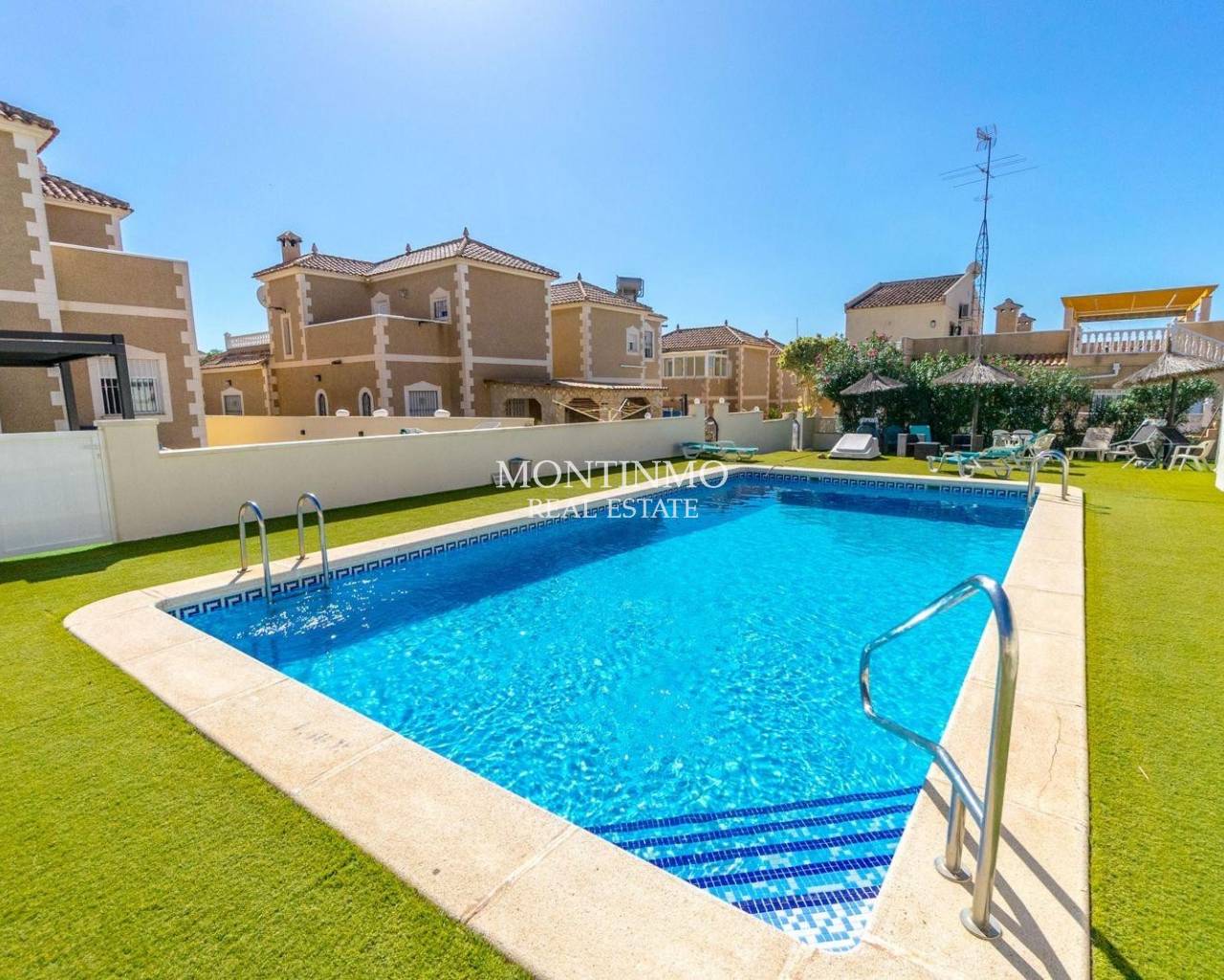 Nos complace presentar esta villa independiente y bien mantenida, situada en la codiciada zona residencial de Blue Lagoon, Villamartin. La vivienda cuenta con 3 dormitorios y 2 baños, distribuidos en una distribución funcional ideal tanto para vivir todo el año como para vacaciones. El salón es luminoso y se conecta perfectamente con una cocina totalmente equipada, mientras que los dormitorios ofrecen un alojamiento cómodo para familia o invitados. En el exterior, dispone de una amplia terraza en planta baja perfecta para comer al aire libre, además de un solárium con vistas panorámicas al mar — el lugar ideal para relajarse al sol. También incluye aparcamiento privado y acceso a una piscina comunitaria bien cuidada. Ubicada en una zona tranquila pero cerca de campos de golf, playas y servicios locales, esta villa ofrece un estilo de vida mediterráneo relajado en la Costa Blanca.