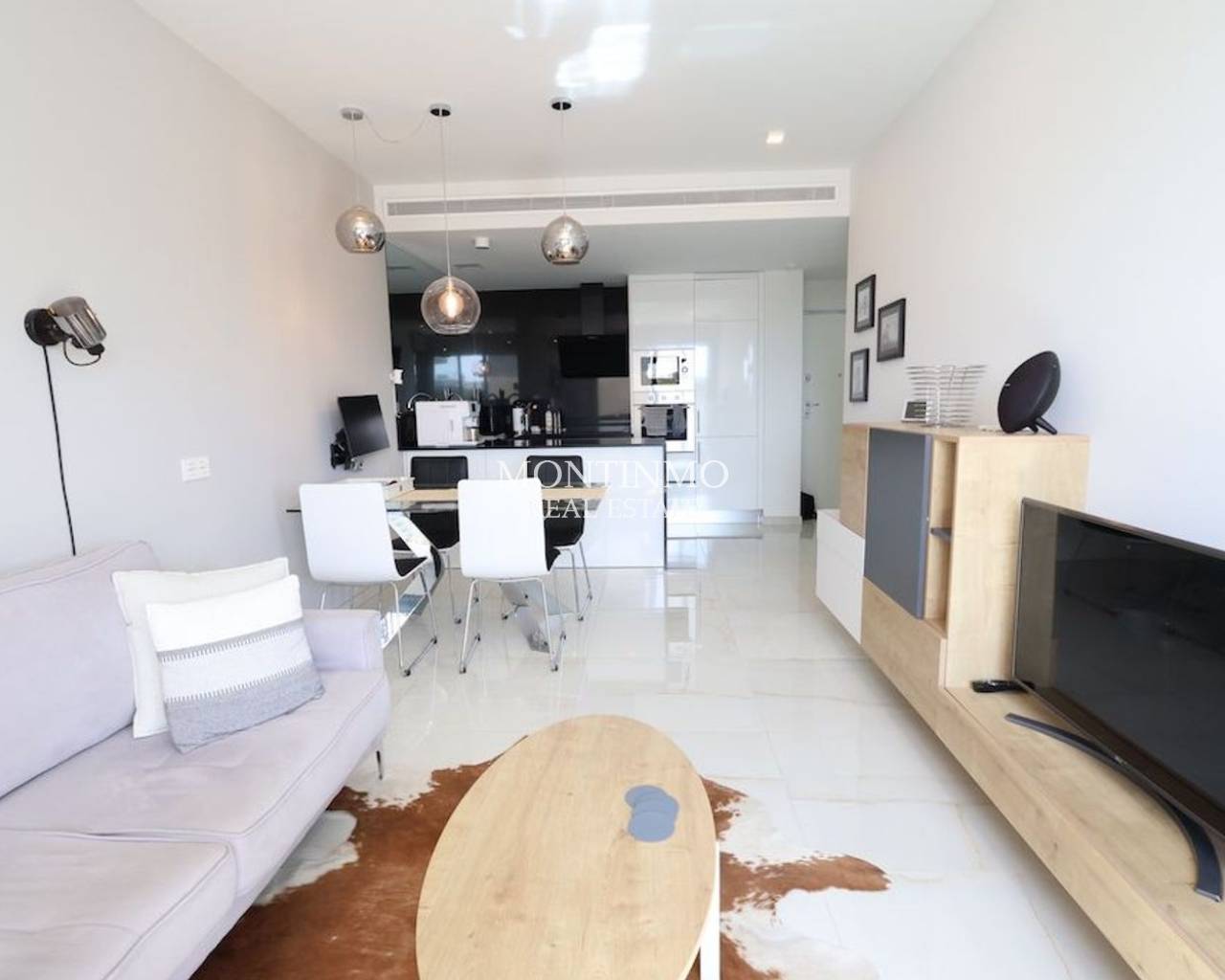 Apartamento orientado al sur con vistas al jardín y a la piscina Este apartamento de dos dormitorios, listo para entrar a vivir y situado en la segunda planta, combina sol, confort y privacidad en una ubicación excepcional. Frente a la piscina comunitaria y rodeado de zonas verdes, ofrece un ambiente abierto y relajado para disfrutar cada día. Gracias a su orientación sur y a sus amplios ventanales, la vivienda disfruta de abundante luz natural durante todo el día. El salón de concepto abierto conecta directamente con la amplia terraza de 21 m², equipada con toldo y barbacoa — un auténtico espacio exterior, perfecto para largas comidas, tardes tranquilas y para disfrutar del clima mediterráneo durante todo el año. La residencia es conocida por su tranquilidad y su cuidada imagen, mientras que tiendas, restaurantes y otros servicios se encuentran a poca distancia. Ideal para quienes desean vivir con comodidad sin renunciar a una buena accesibilidad. Distribución y extras: 76,6 m² de superficie habitable 2 amplios dormitorios 2 baños completamente equipados Luminoso salón con cocina moderna de concepto abierto Suelo radiante en los baños Aire acondicionado y sistema de alarma Mosquiteras en las ventanas Semi-amueblado Listo para entrar a vivir Un valor añadido excepcional: 2 plazas de aparcamiento subterráneas, ambas con punto de carga para vehículos eléctricos — una ventaja poco común y orientada al futuro. Este apartamento es ideal como vivienda habitual al sol, segunda residencia sin preocupaciones o inversión con atractivo potencial de alquiler dentro de una residencia muy demandada.
