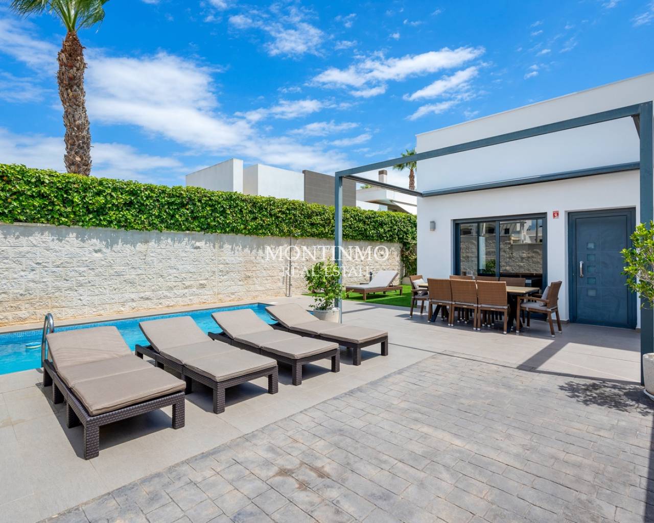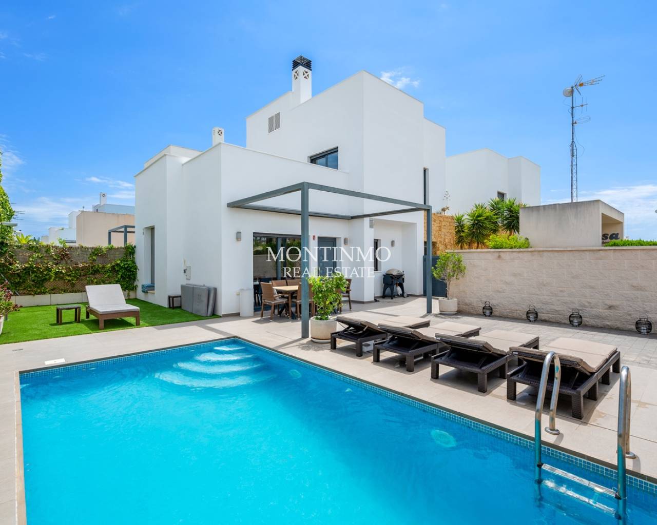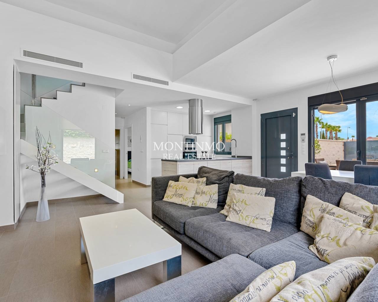 Chalet independiente en Ciudad Quesada – 3 dormitorios, piscina privada Este precioso chalet independiente, construido en 2013, se encuentra en la codiciada zona de Ciudad Quesada. Con 120 m² de superficie habitable en una parcela de 200 m², ofrece piscina privada, aparcamiento privado y todas las comodidades modernas. La propiedad se encuentra en excelentes condiciones, recientemente pintada y mantenida como nueva, y se vende completamente amueblada. Cuenta con 3 dormitorios y 2 baños, incluyendo calefacción por suelo radiante en ambos baños y aire acondicionado centralizado en toda la casa. La planta baja incluye un dormitorio, un amplio salón-comedor con cocina americana y un baño. En la planta superior encontrará dos dormitorios adicionales, un baño y acceso a un solárium privado con impresionantes vistas y puestas de sol inolvidables. Ubicada a solo minutos del supermercado más cercano y a solo 5 minutos en automóvil del centro de Quesada, esta casa es perfecta como residencia permanente, casa de vacaciones u oportunidad de inversión.