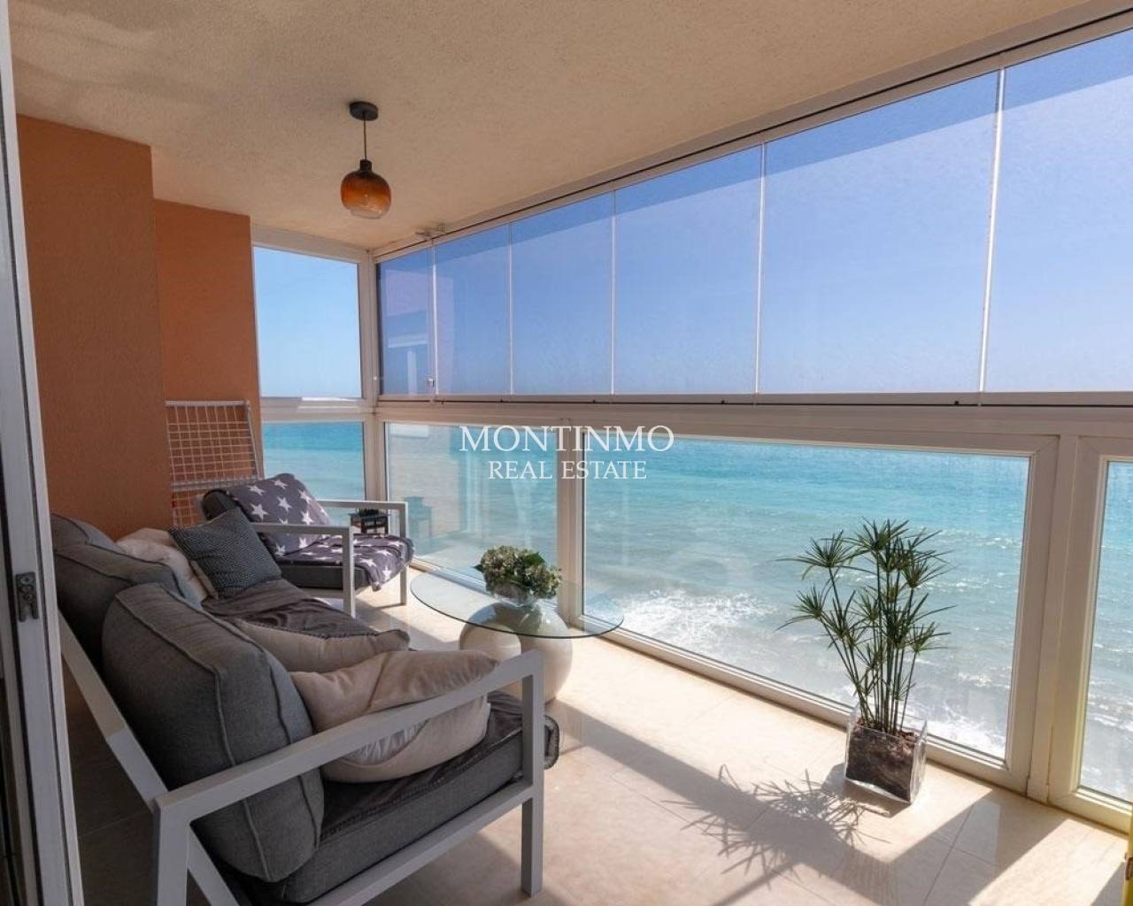 Este apartamento en primera línea de mar, con orientación sur, tres dormitorios y situado en la novena planta de un edificio en Torrevieja, goza de una ubicación inmejorable, justo en primera línea de playa, ofreciendo unas vistas panorámicas espectaculares del mar Mediterráneo. A tan solo dos minutos a pie de supermercados, bares y restaurantes, esta ubicación privilegiada le ofrece todo lo que pueda necesitar a un paso, ¡y con la playa literalmente a sus pies! El apartamento cuenta con una cocina americana totalmente equipada con una práctica barra americana y un lavadero. El espacioso salón-comedor dispone de aire acondicionado y grandes puertas correderas que dan a una terraza cubierta acristalada donde podrá relajarse y disfrutar de las impresionantes vistas al mar, así como de una agradable vista a la piscina comunitaria. Hay tres dormitorios dobles, todos con armarios empotrados y aire acondicionado. El dormitorio principal cuenta con un baño privado con ducha y acceso directo a una terraza privada, perfecta para contemplar el amanecer sobre el mar. Un segundo baño moderno con ducha da servicio a los otros dos dormitorios. Situado en una de las zonas más cotizadas de primera línea de playa de Torrevieja, este apartamento ofrece una oportunidad única para disfrutar de una elegante vida costera con todas las comodidades a mano y el relajante sonido del mar como telón de fondo diario. Una vivienda verdaderamente excepcional en la Costa Blanca Sur.