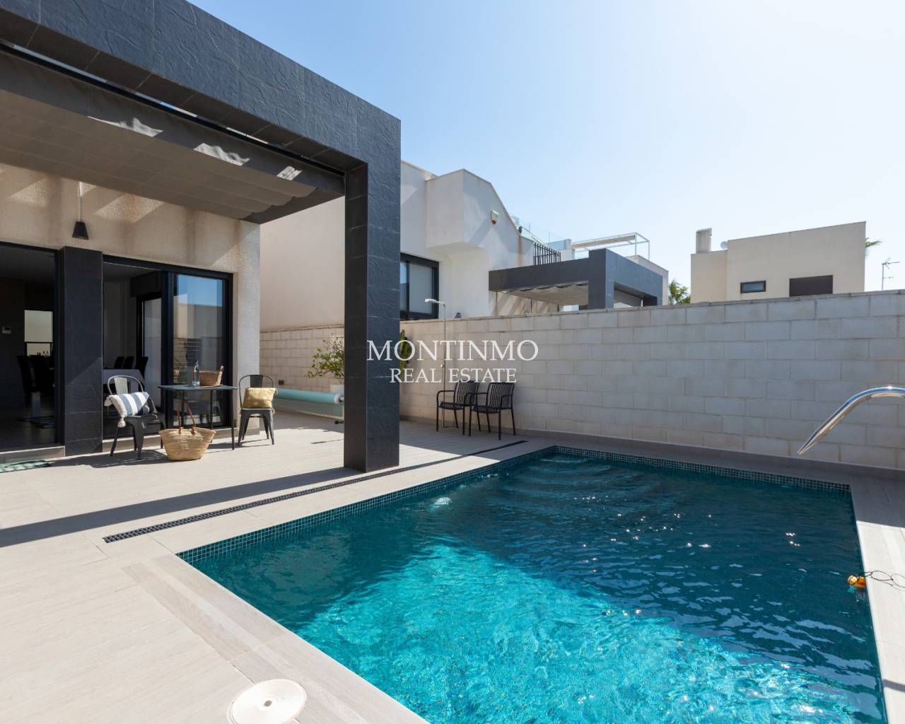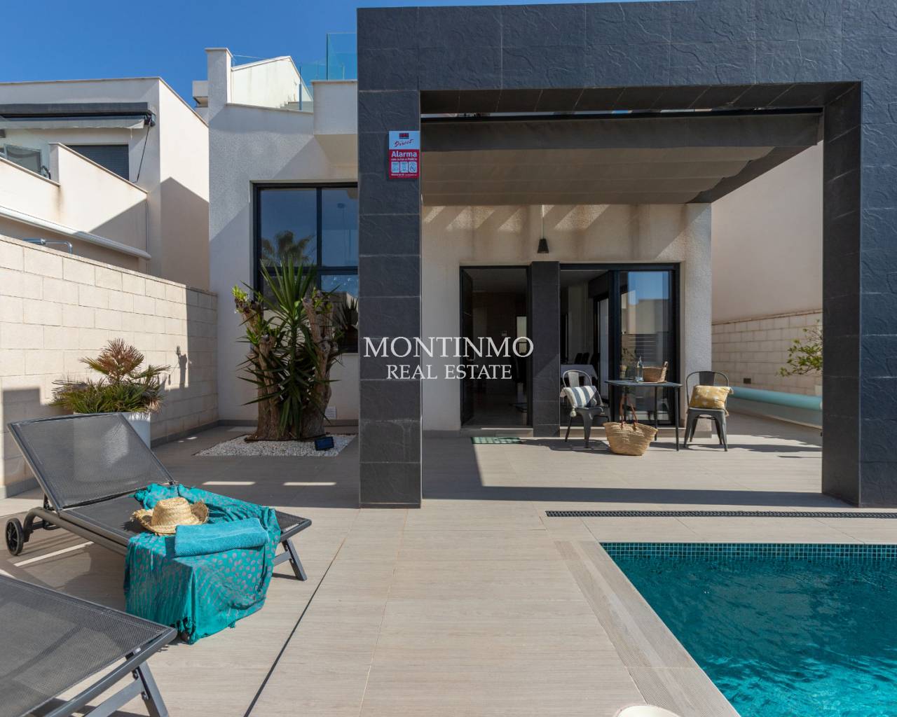 ¿Siempre ha soñado con tener su propia villa bajo el sol español? Esta es una excelente oportunidad para adquirir una villa moderna con piscina recién reformada. Dispone de aparcamiento privado en su jardín y en la calle interior de una urbanización cerrada y segura. En la planta baja encontrarás un amplio salón-comedor. El luminoso salón tiene doble altura. La cocina es moderna y está bien equipada, con un práctico lavadero en la parte trasera. También hay un dormitorio con baño en suite y un aseo independiente. En la planta superior se encuentra el dormitorio principal con baño en suite, así como otro dormitorio con amplio armario y sofá cama. El dormitorio principal tiene un balcón orientado al sur, desde el que se accede a una terraza en la azotea. Los servicios de Rojales están muy cerca; el supermercado Consum se encuentra a tan solo unos cientos de metros y hay varios restaurantes a poca distancia a pie. El popular parque El Recorral está a solo media hora a pie y el campo de golf La Marquesa a menos de 10 minutos en coche. Las playas de arena más cercanas en El Moncayo están a unos 10 minutos en coche. El popular mercado dominical Lemon Tree se encuentra a tan solo 5 km. Cuotas comunitarias de tan solo 241,68 € al año.